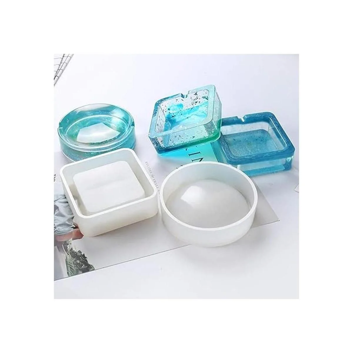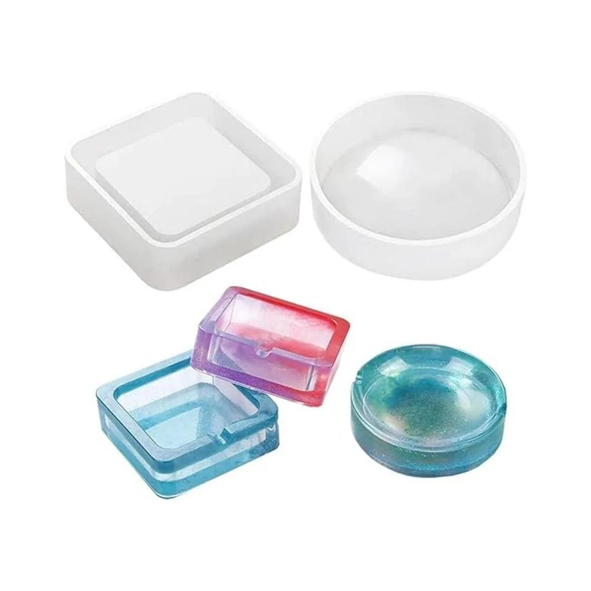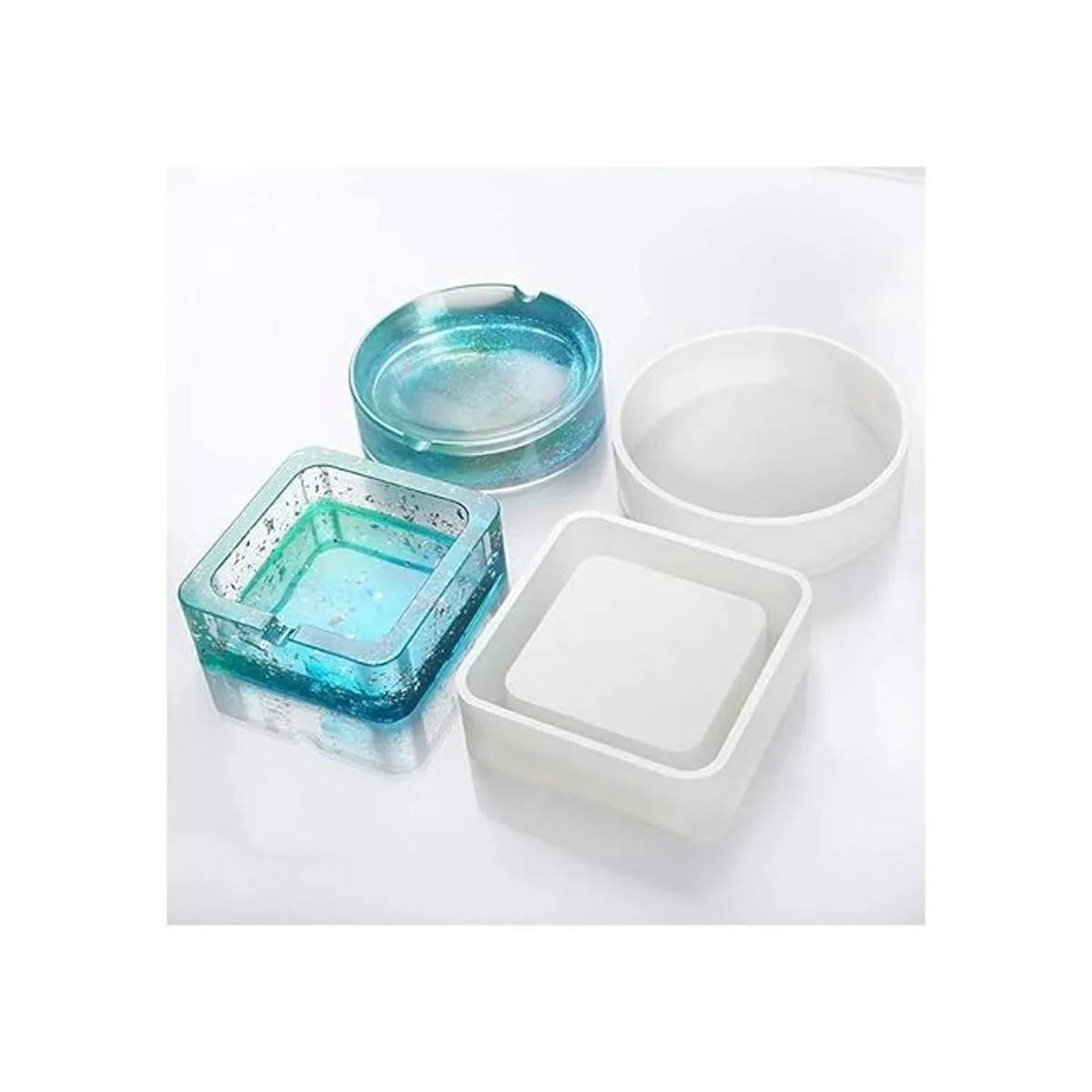 Moldes de cenicero para fundición de resina, moldes de silicona para cenicero, cuadrados y redondos, moldes de resina de gran tamaño