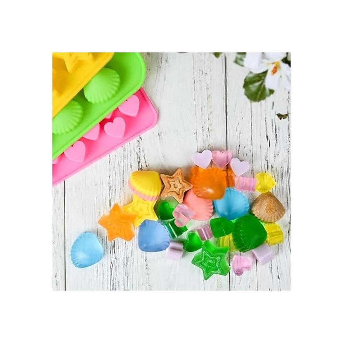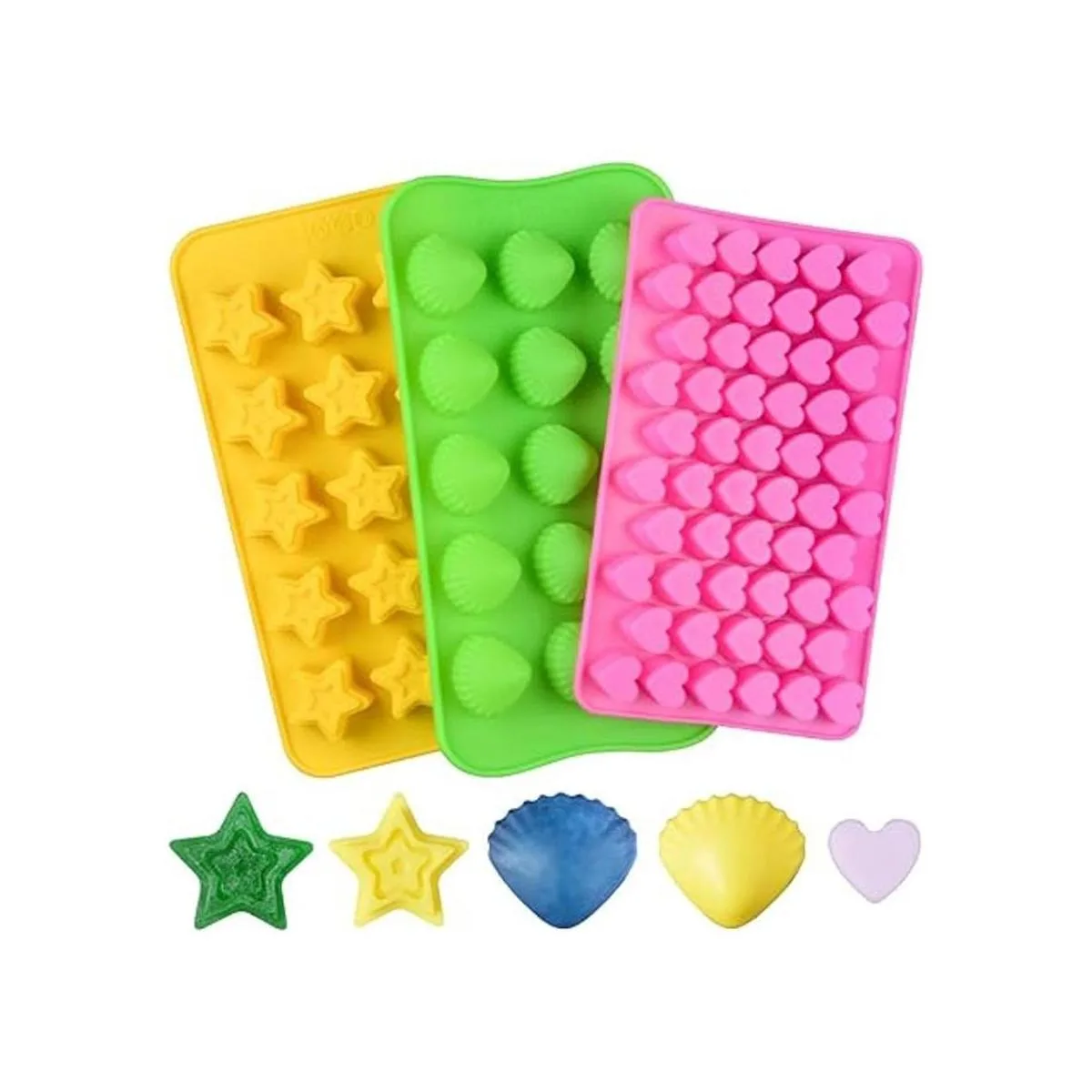 Moldes de chocolate de goma de silicona, molde de caramelo y bandeja de silicona para cubitos de hielo antiadherente, incluyendo corazones, estrellas, conchas