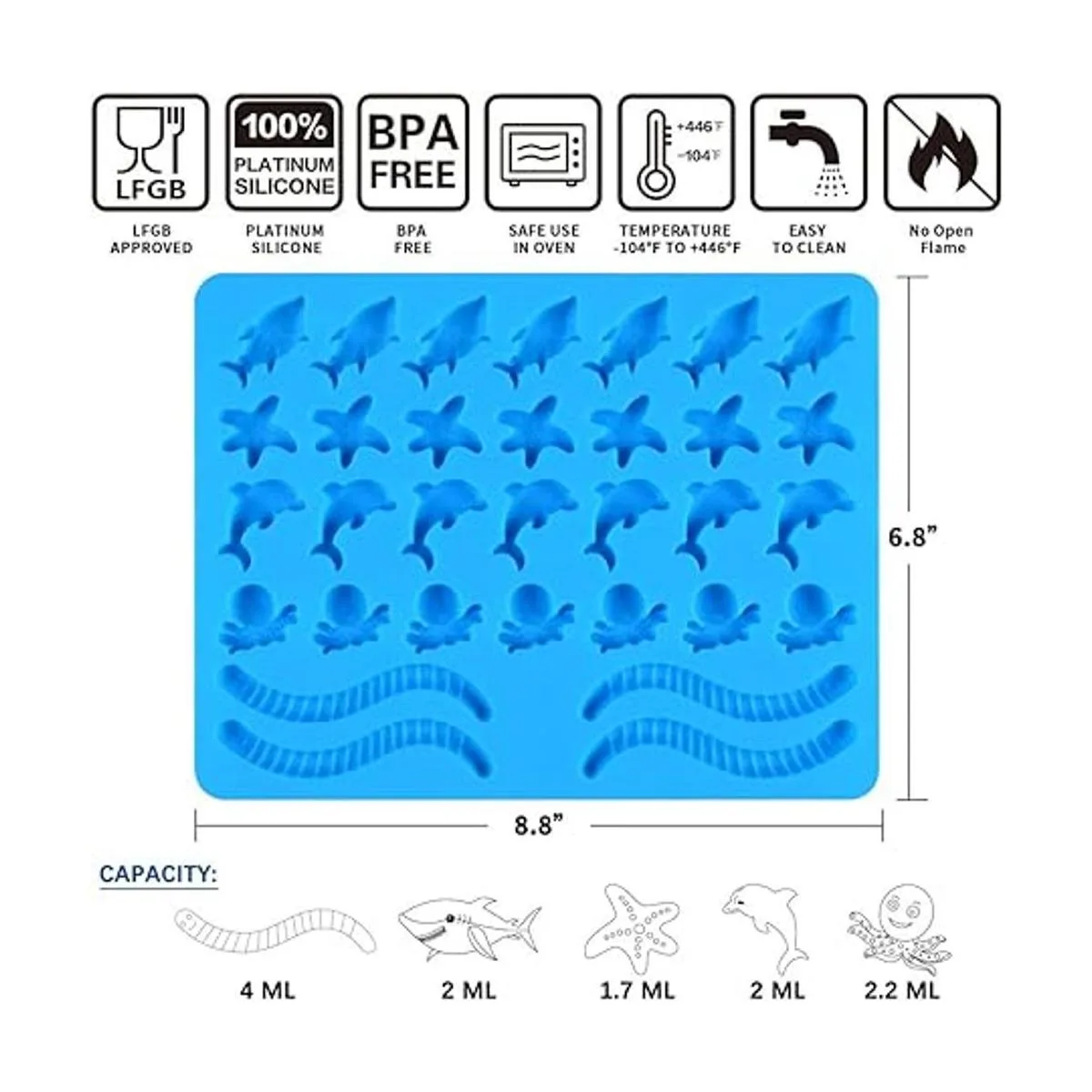 Multiusos: haz aperitivos saludables con los niños. A los niños les encantarán estas golosinas de mar oceánico con buena forma de detalle. Ideal para hacer gomitas, chocolates, dulces, gelatina, dulces duros, aperitivos de frutas, dulces, cubitos de hielo, crayones y mucho más