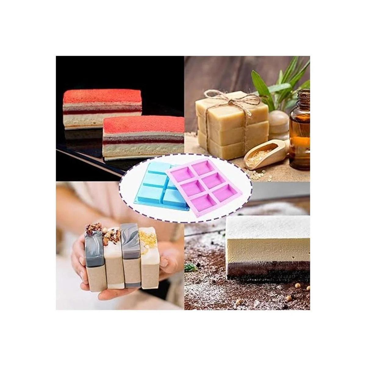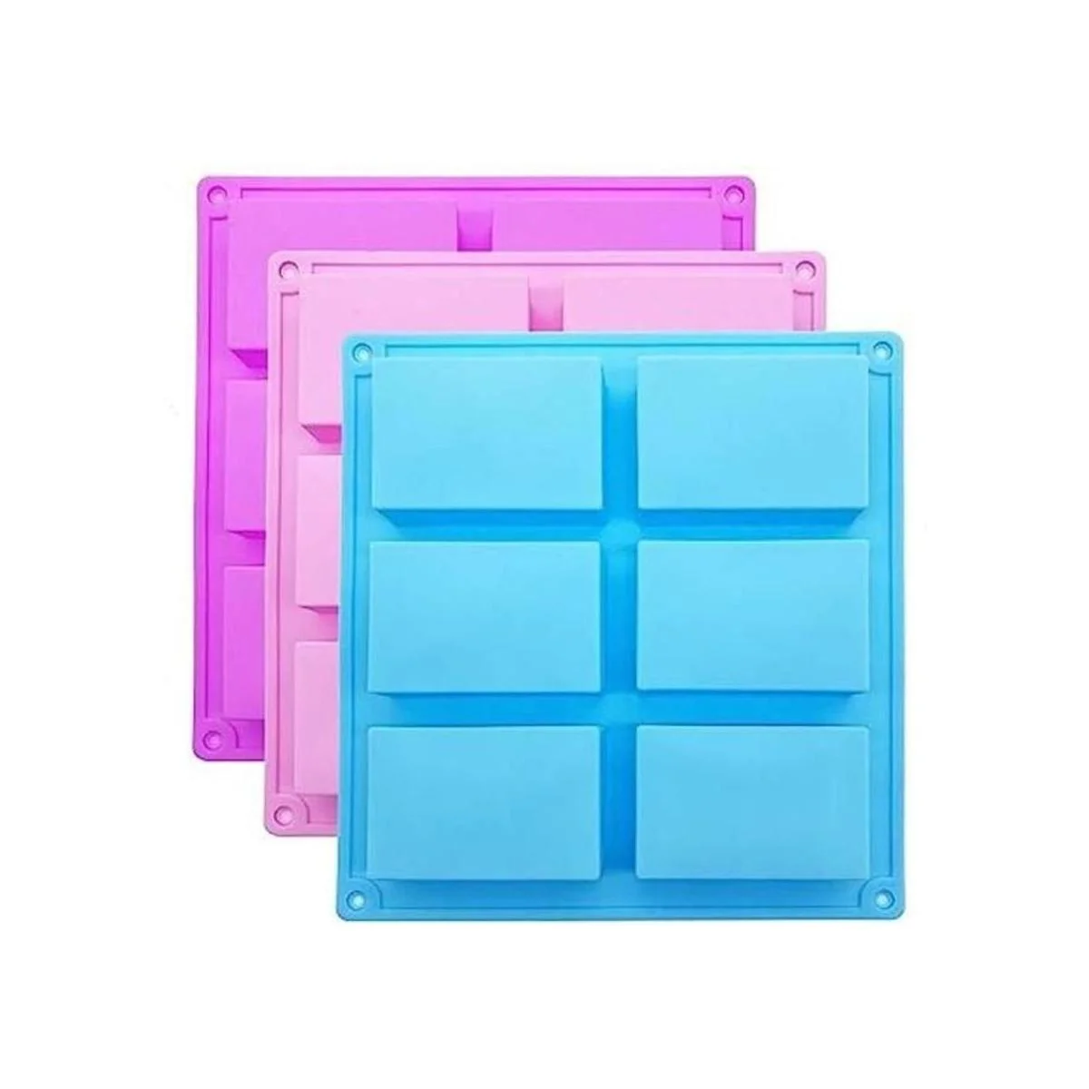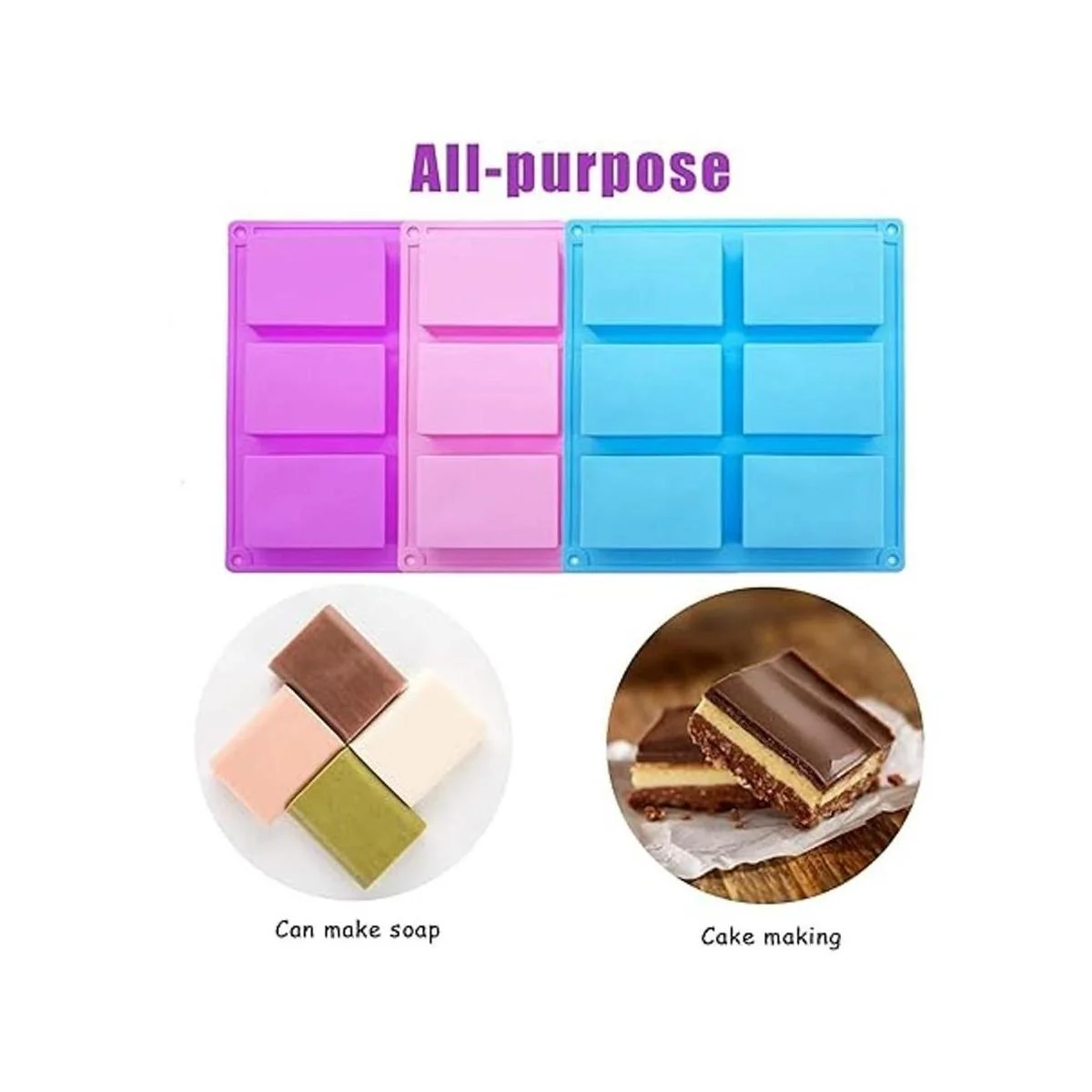 Moldes de jabón de silicona, moldes rectangulares de silicona de 6 cavidades para moldes de jabón caseros, moldes de pastel, moldes de chocolate y bandeja de cubitos de hielo, juego de 3 moldes azul y morado y rosa.