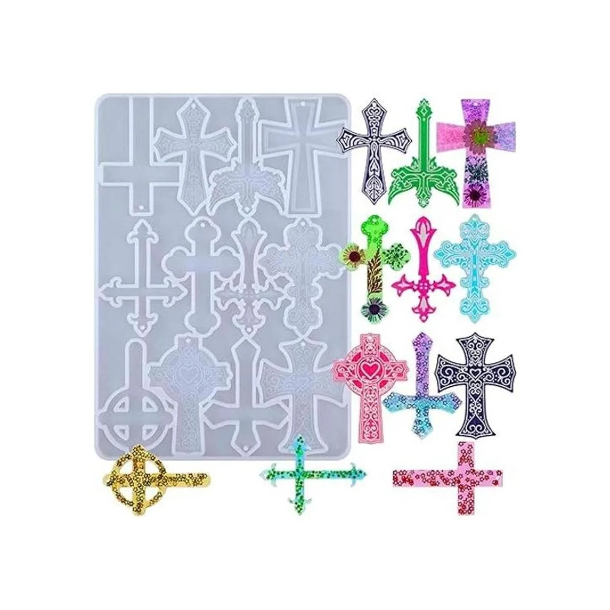 Moldes de resina de cruz, moldes de resina epoxi de 12 cavidades, moldes de silicona para llavero, manualidades, collar, joyería, colgante, para hacer regalos de Halloween