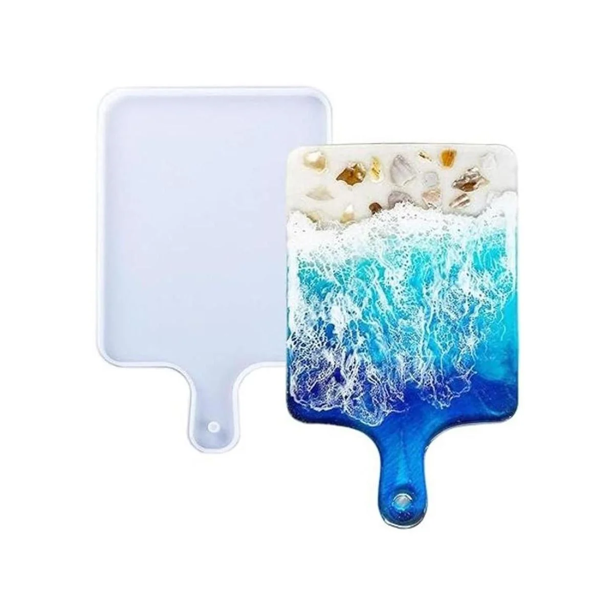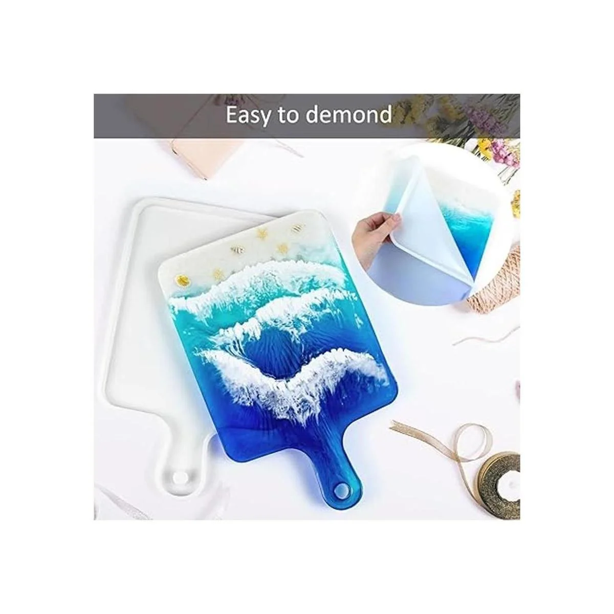 Moldes de resina de silicona, molde de fundición para resina epoxi, resina de bricolaje, tablero de mango rectangular grande para decoración del hogar, bandeja rodante de ágata para manualidades