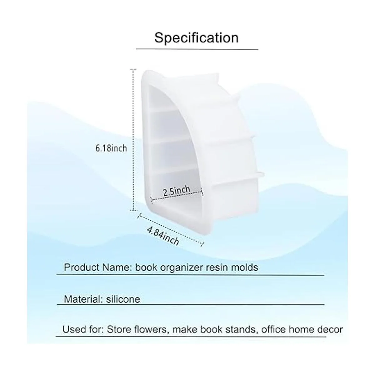 Moldes grandes de resina de silicona: incluye 1 par de moldes de resina epoxi organizador de libros, cada sujetalibros acabado necesita aproximadamente resina epoxi de 26.54 onzas, pueden mantener tus libros, revistas, discos de vinilo organizados verticalmente, mantener tu estante y estantería ordenados.