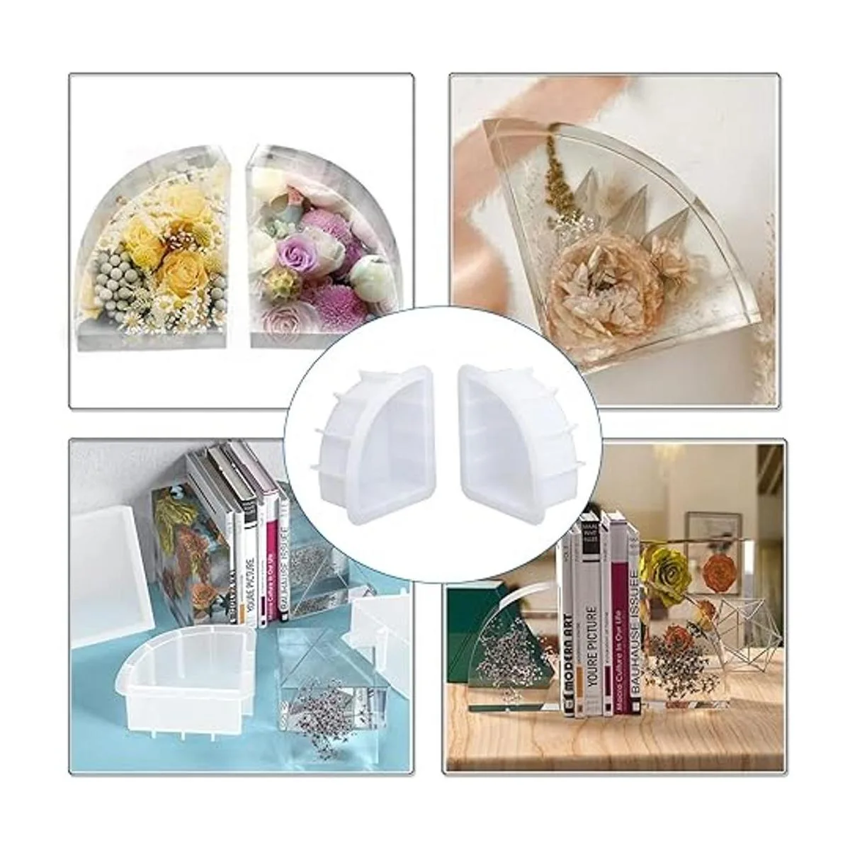 Moldes de resina de sujetalibros grandes, 1 par de moldes de resina de silicona sectorial organizan libros de geodas, moldes de resina epoxi de cristal para libros, organizador de escritorio, decoración del hogar de oficina, regalo