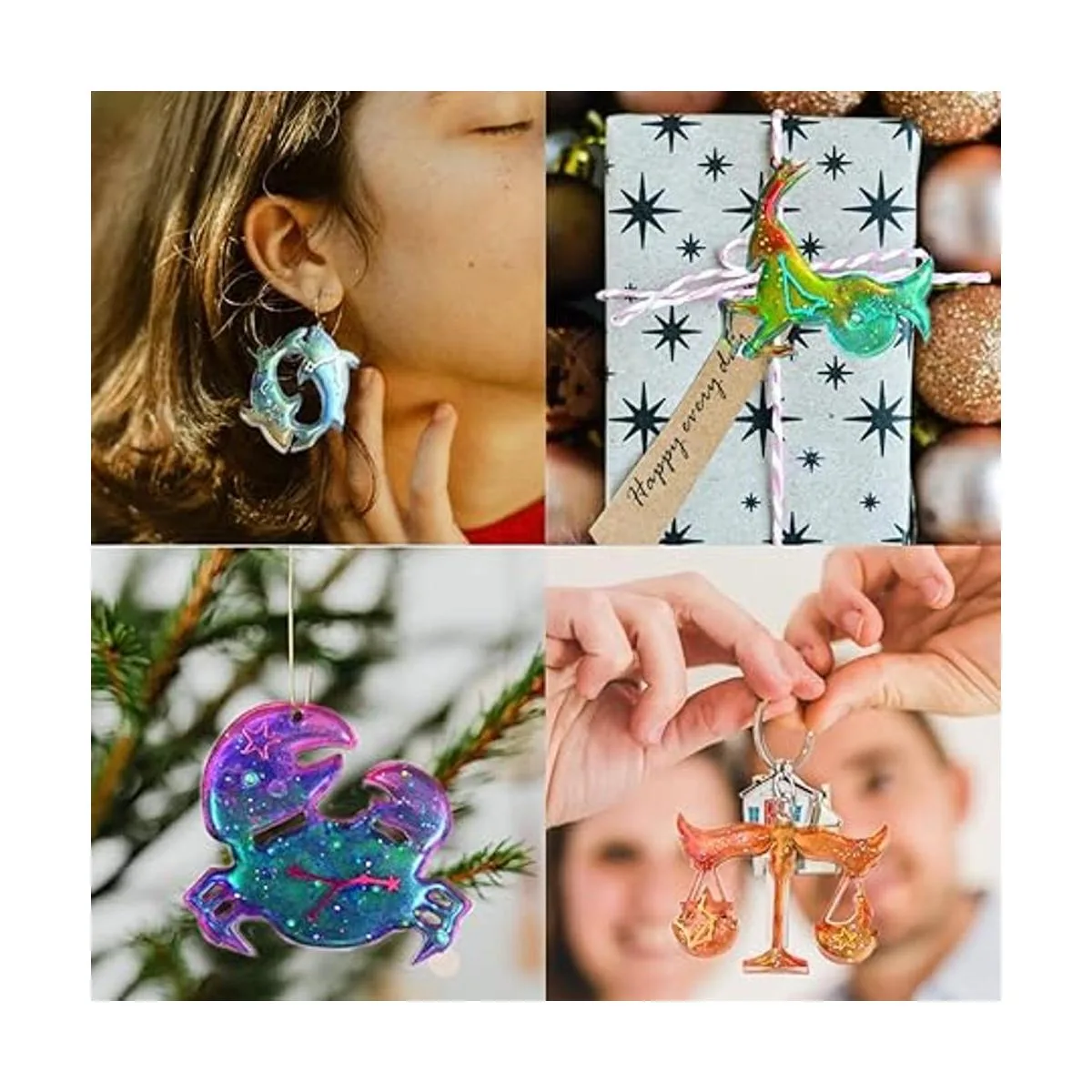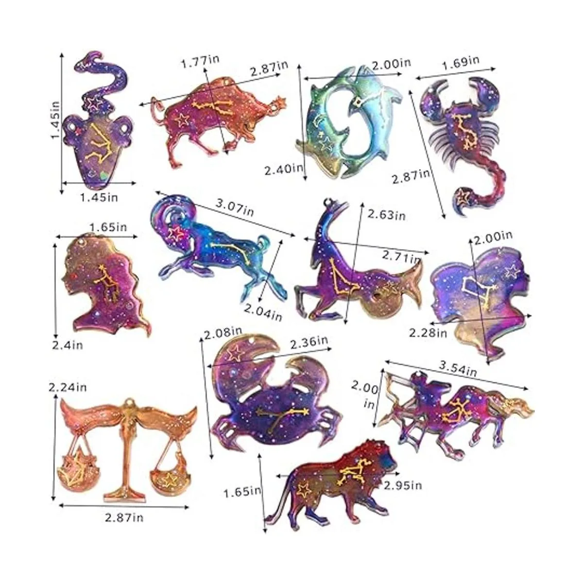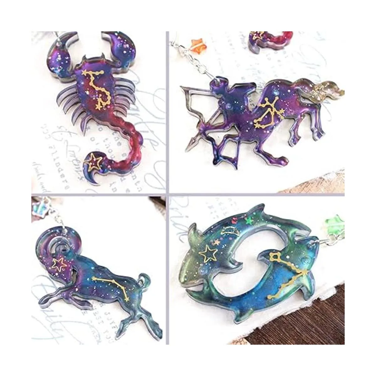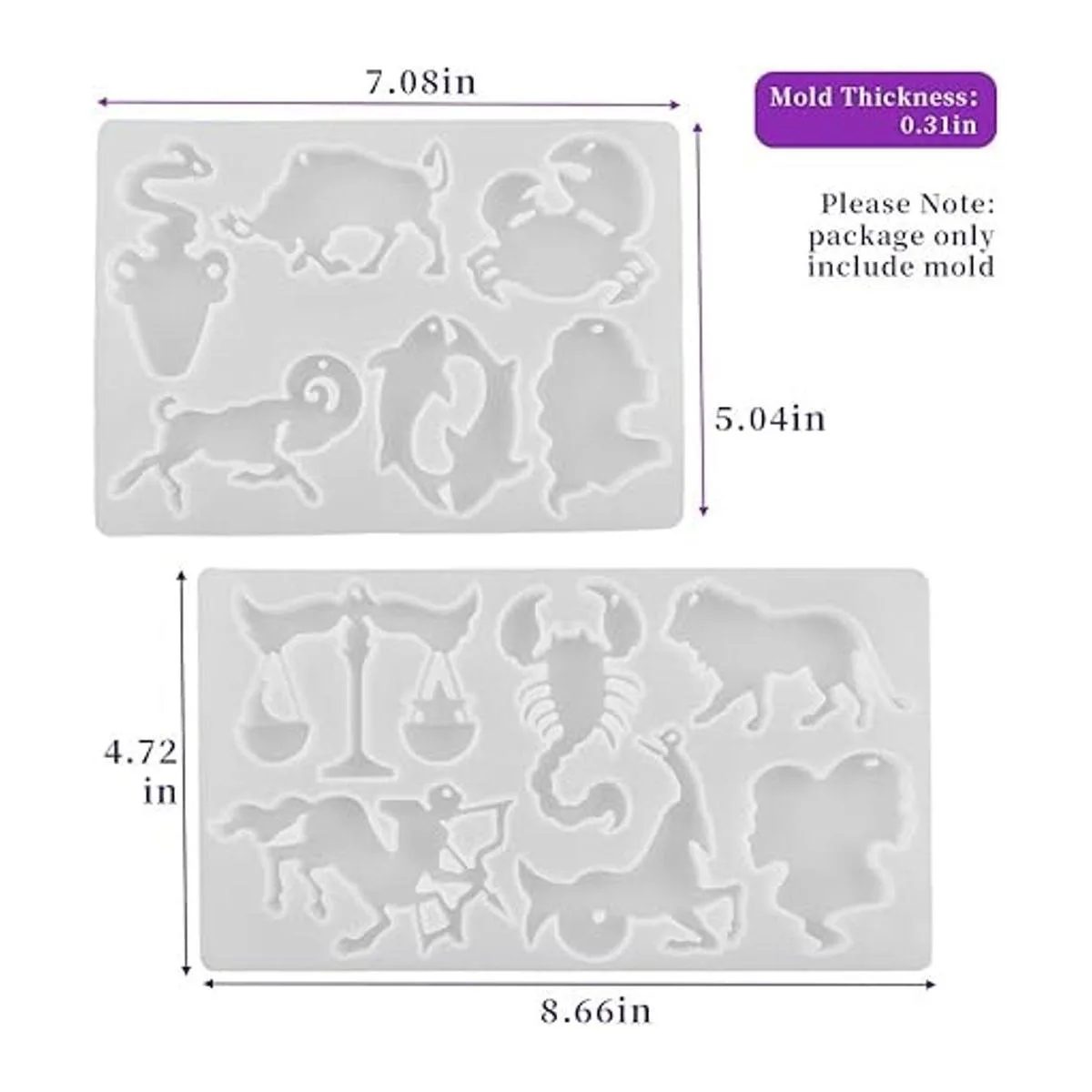 Molde de fundición de resina: los moldes de silicona colgantes de signo del zodiaco son compatibles con la mayoría de materiales de fundición como resina epoxi, resina UV, arcilla de hormigón de cemento, cera, etc. Aporta más posibilidades y espacio creativo a tu creación