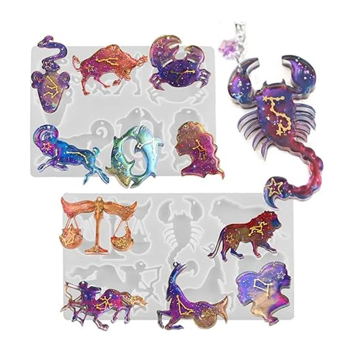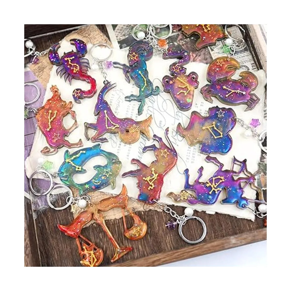 Moldes de resina del zodiaco, molde de silicona para llavero de animales de constelación, moldes únicos de resina epoxi, molde colgante para joyería de bricolaje, aretes, collar, manualidades, llavero, decoración de Halloween
