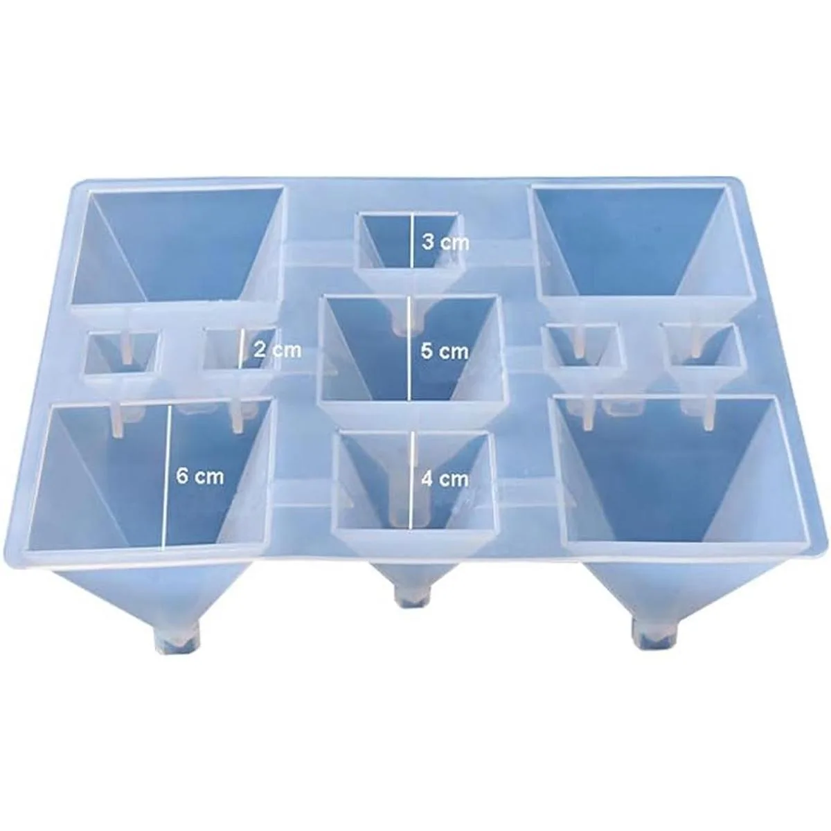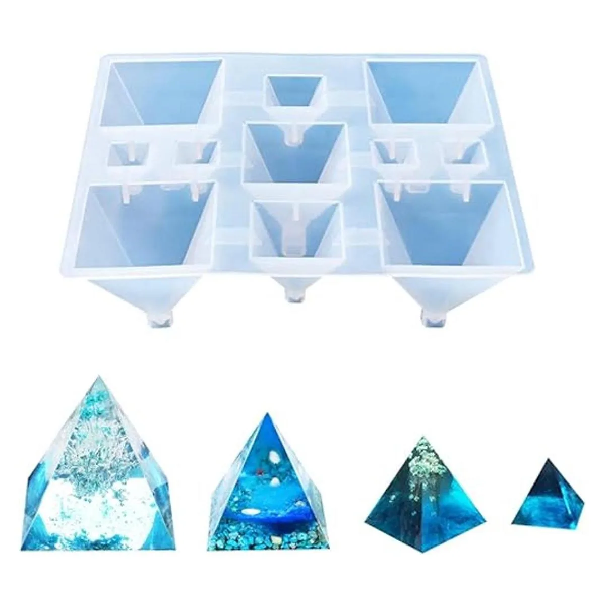 Molde de fundición 11 en 1: este molde de pirámide incluye 11 soportes de pirámide en diferentes tamaños, lo que significa que puedes hacer 11 manualidades de pirámide al mismo tiempo.