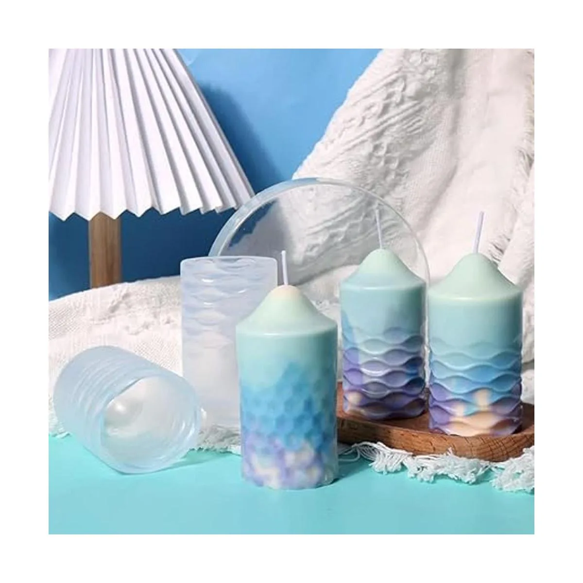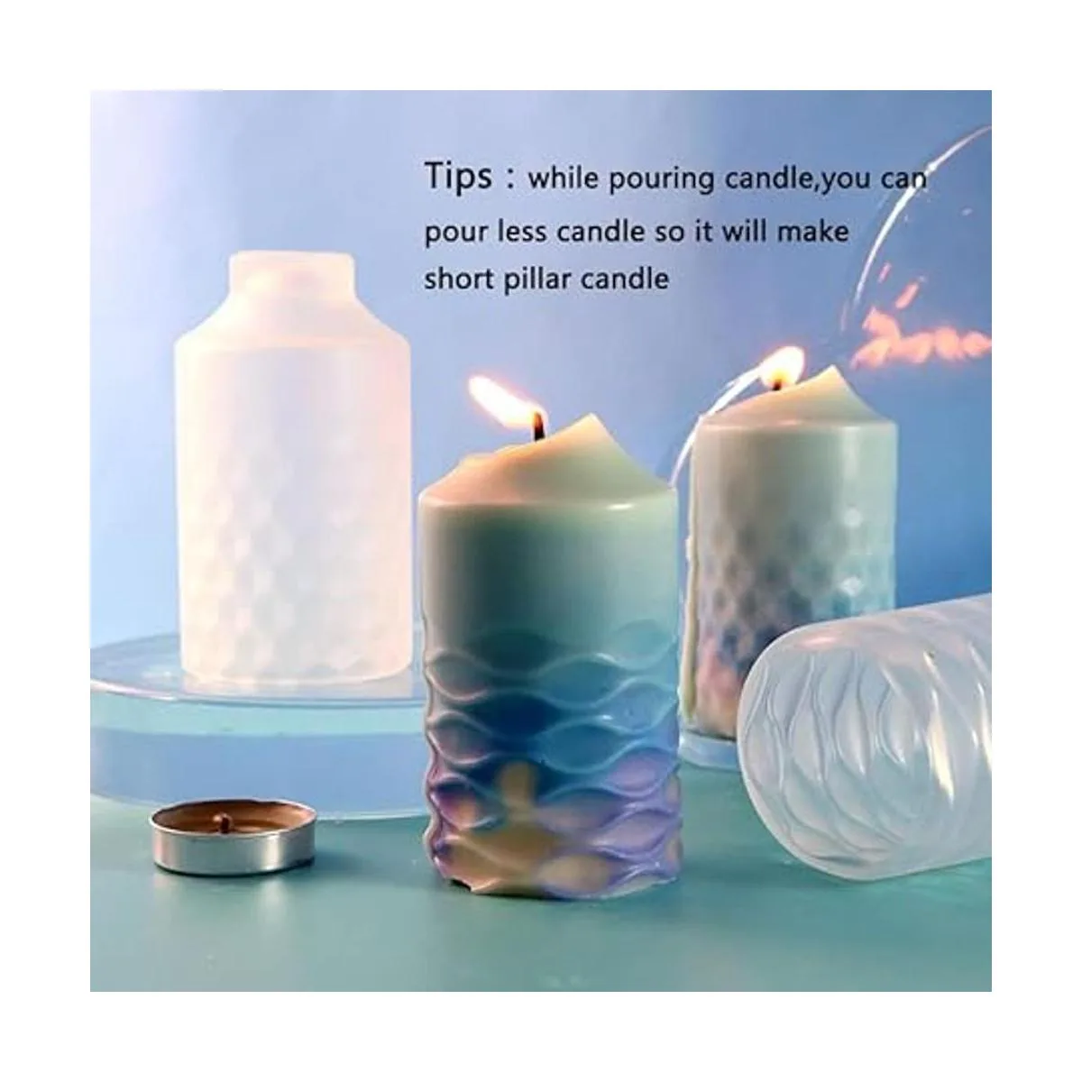 Moldes de velas cilíndricas de silicona, moldes de velas para hacer velas, moldes de velas de pilar actualizados con detalles, velas de aromaterapia fáciles de desmoldar, cera, jabones, arcilla polimérica