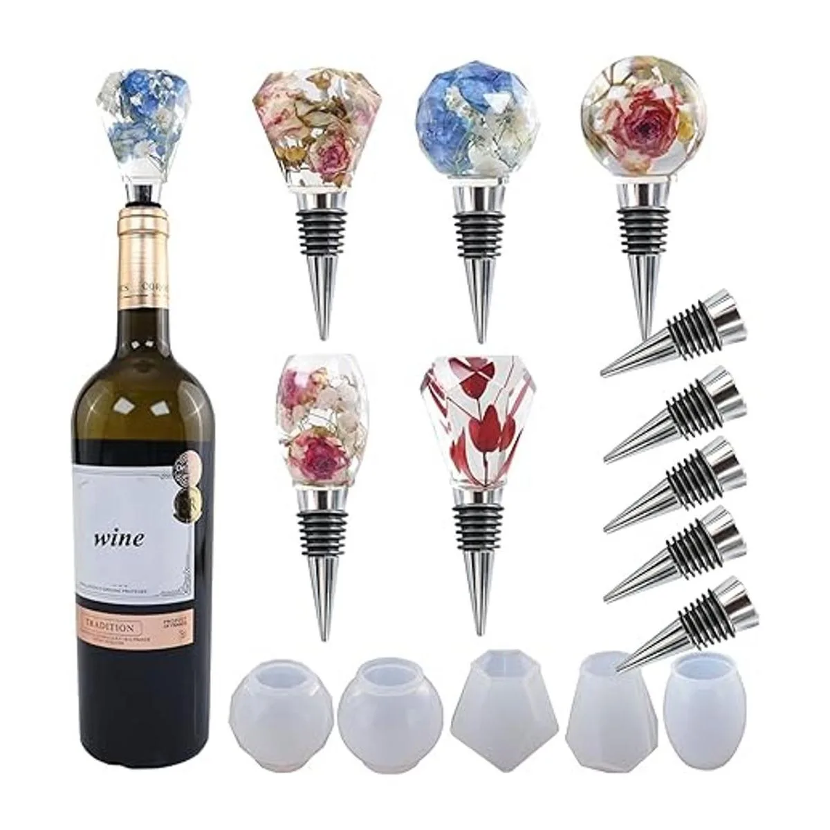 Lo que obtendrás: 5 moldes pequeños de resina de cristal. Viene con 5 tapones de aleación para hacer varios tapones de botella de vino espumoso.