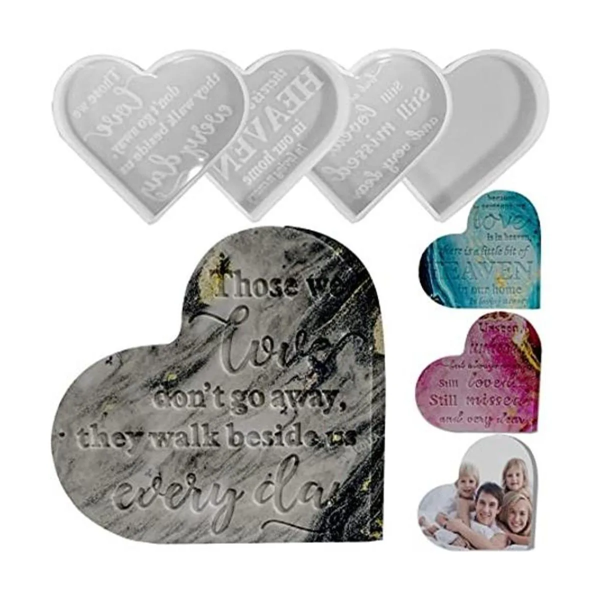 Moldes para letreros de corazón, 4 piezas, moldes de resina, moldes de silicona para resina epoxi, molde conmemorativo de corazón, letrero de condolencia, moldes de silicona para fundición de manualidades, decoración del hogar, oficina, decoración de mesa de condolencias