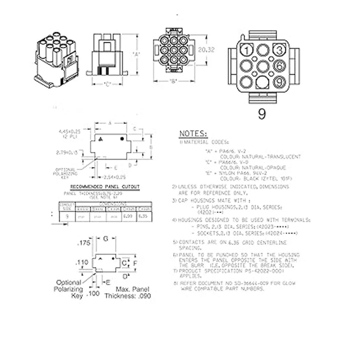 Molex 1 juego completo 9 pines con 1420 AWG, conector de cable 0.084 in D, cierre de pestillo, MLX