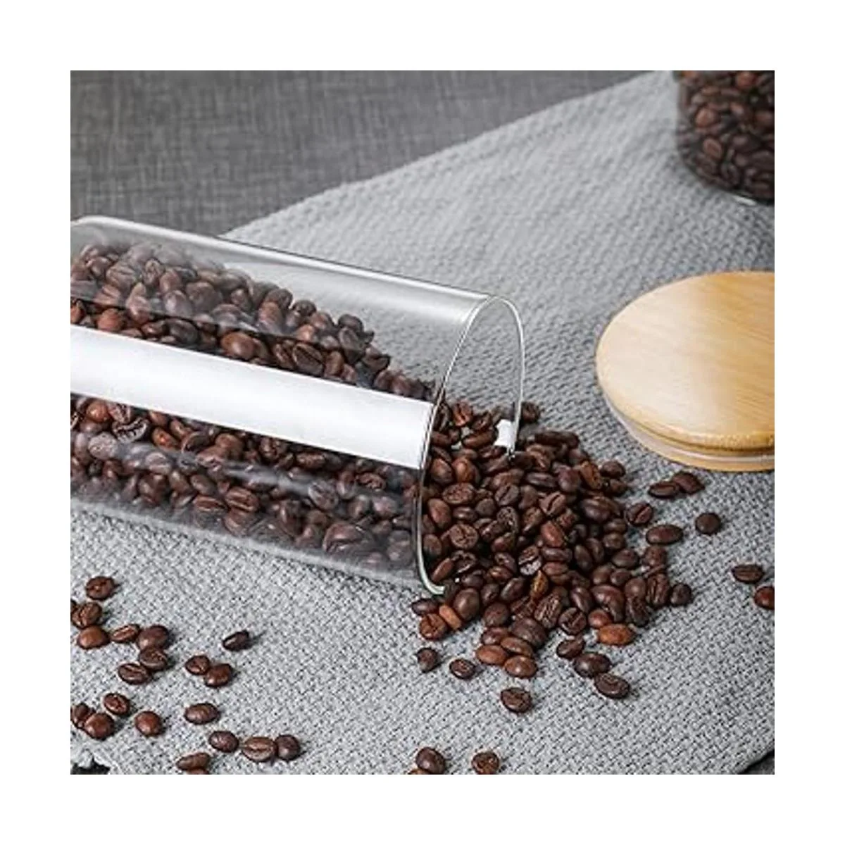 MOLFUJ Contenedor de almacenamiento de vidrio de 18.6 fl oz18 onzas líquidas con tapa de madera, botella organizadora decorativa transparente apilable con tapa de madera hermética para alimentos, café, dulces, azúcar, sal, té