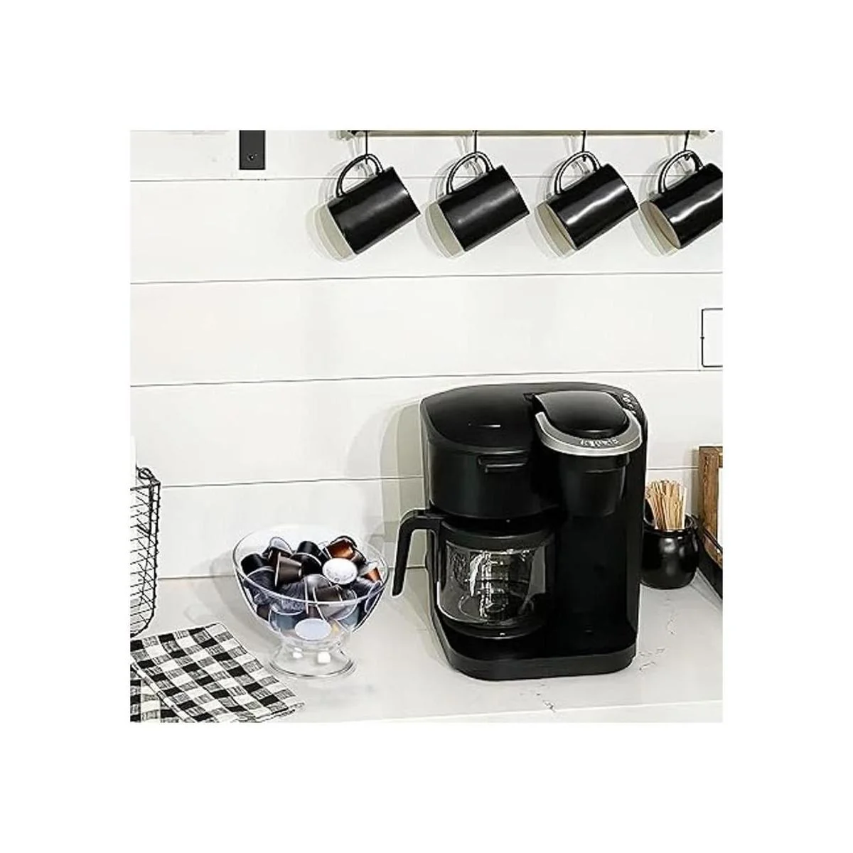 Acceso limpio y fácil: obtén tu café cápsula al alcance de un brazo. La amplia boca oblicua de la apertura del soporte para cápsulas K permite seleccionar fácilmente tu café favorito del día sin abrir el cajón, recordándote que debes rellenar el tiempo.