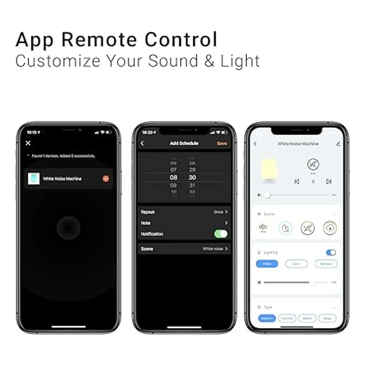 Ajustes personalizables : la máquina de ruido blanco permite personalizar el color, el brillo, el sonido y el nivel de volumen. Configura programas para apagar y encender automáticamente en función del horario de sueño de tu familia.