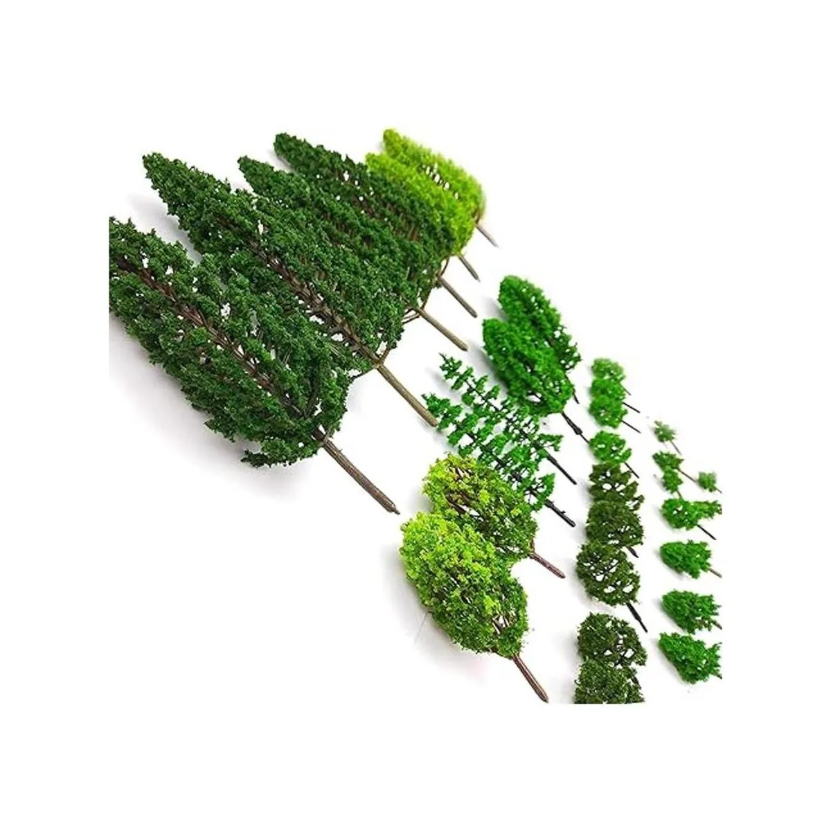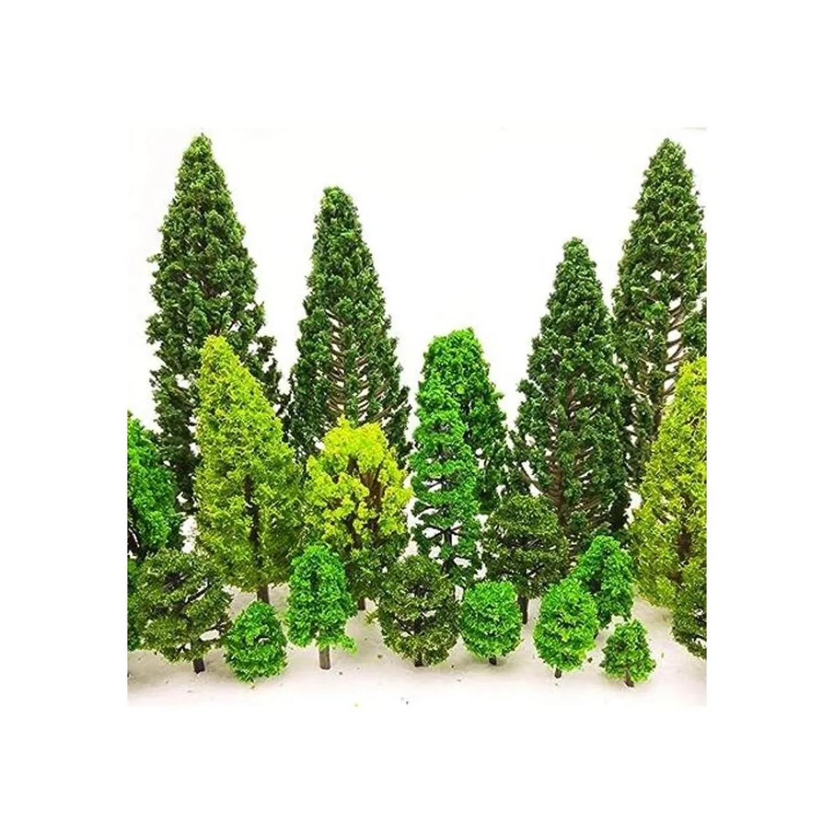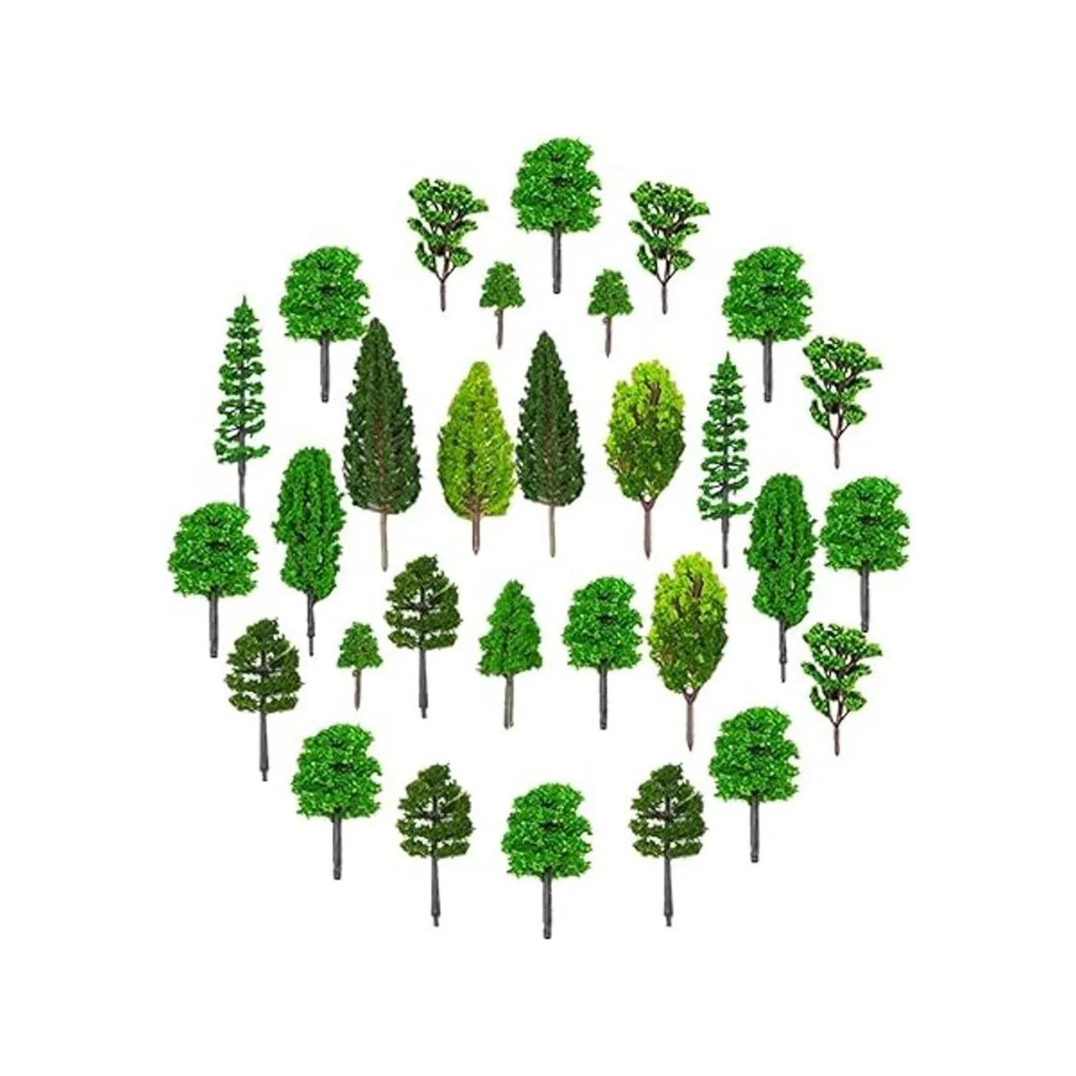Cantidad: viene con 36 piezas de tamaños mixtos de árboles modelo en verde natural, suficientes cantidades de árboles artificiales para accesorios de paisaje de bricolaje.