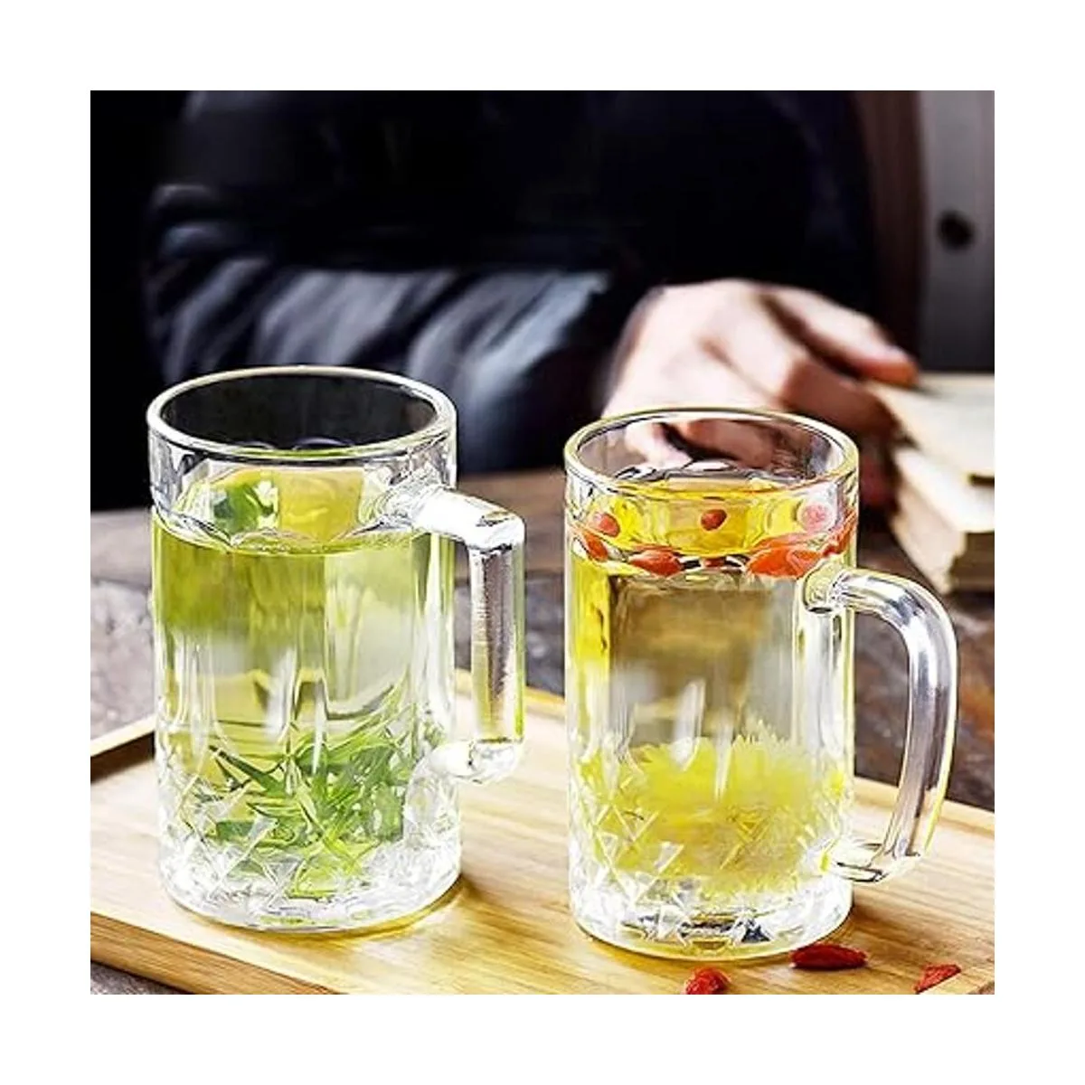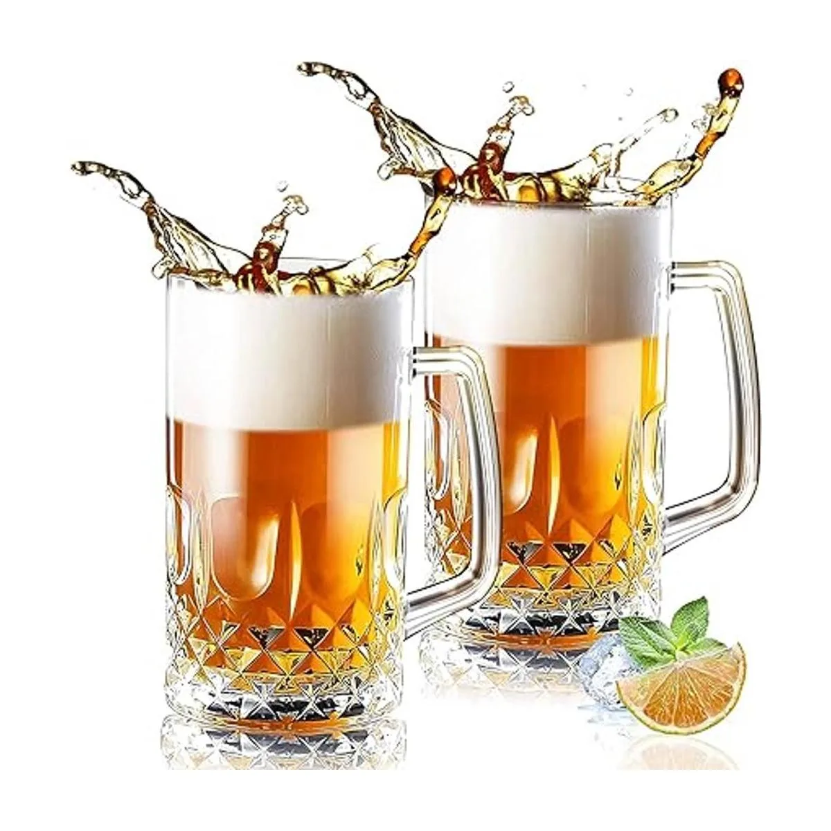 Momugs Tazas de cerveza de 32 onzas Paquete de 2 vasos de cerveza altos transparentes de estilo alemán extra grandes para hombres Vidrio grueso resistente con asa