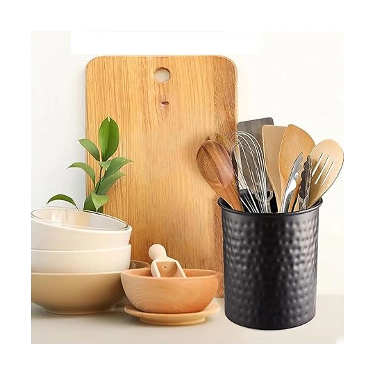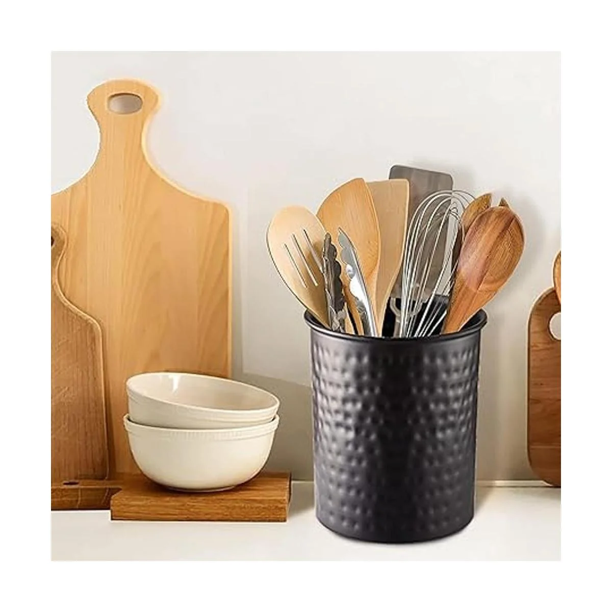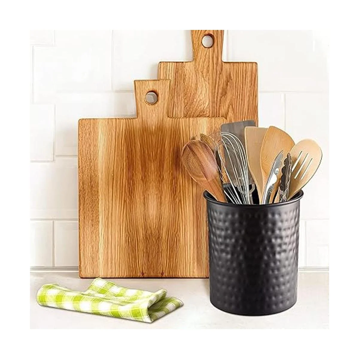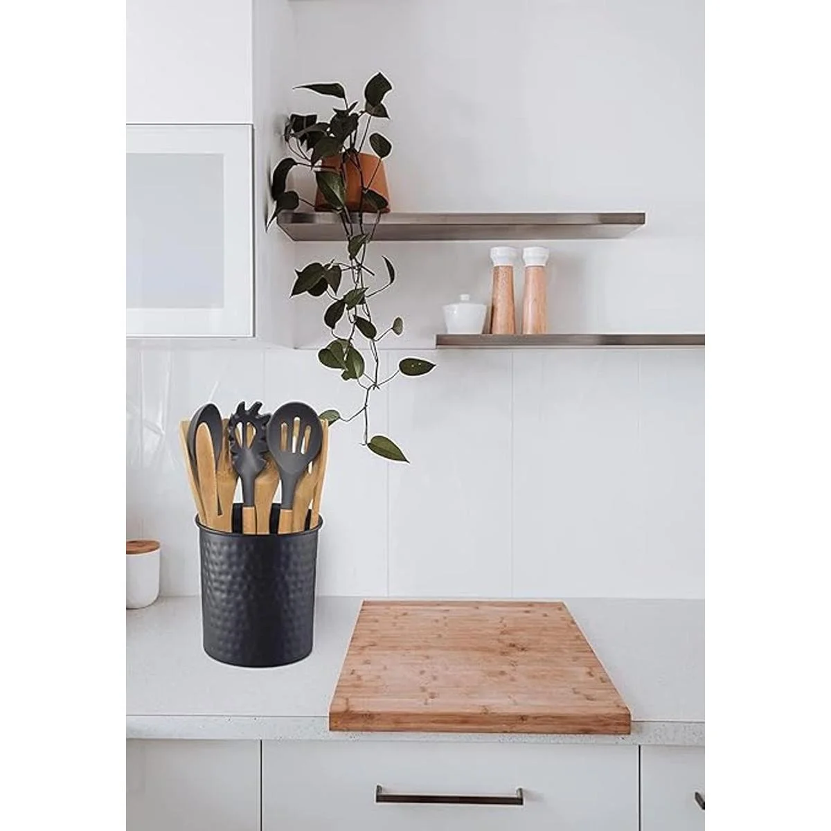Monarch Abode Soporte para utensilios de cocina, organizador martillado a mano, organización de cocina para utensilios, Crock para utensilios de cocina, negro, grande, 19177