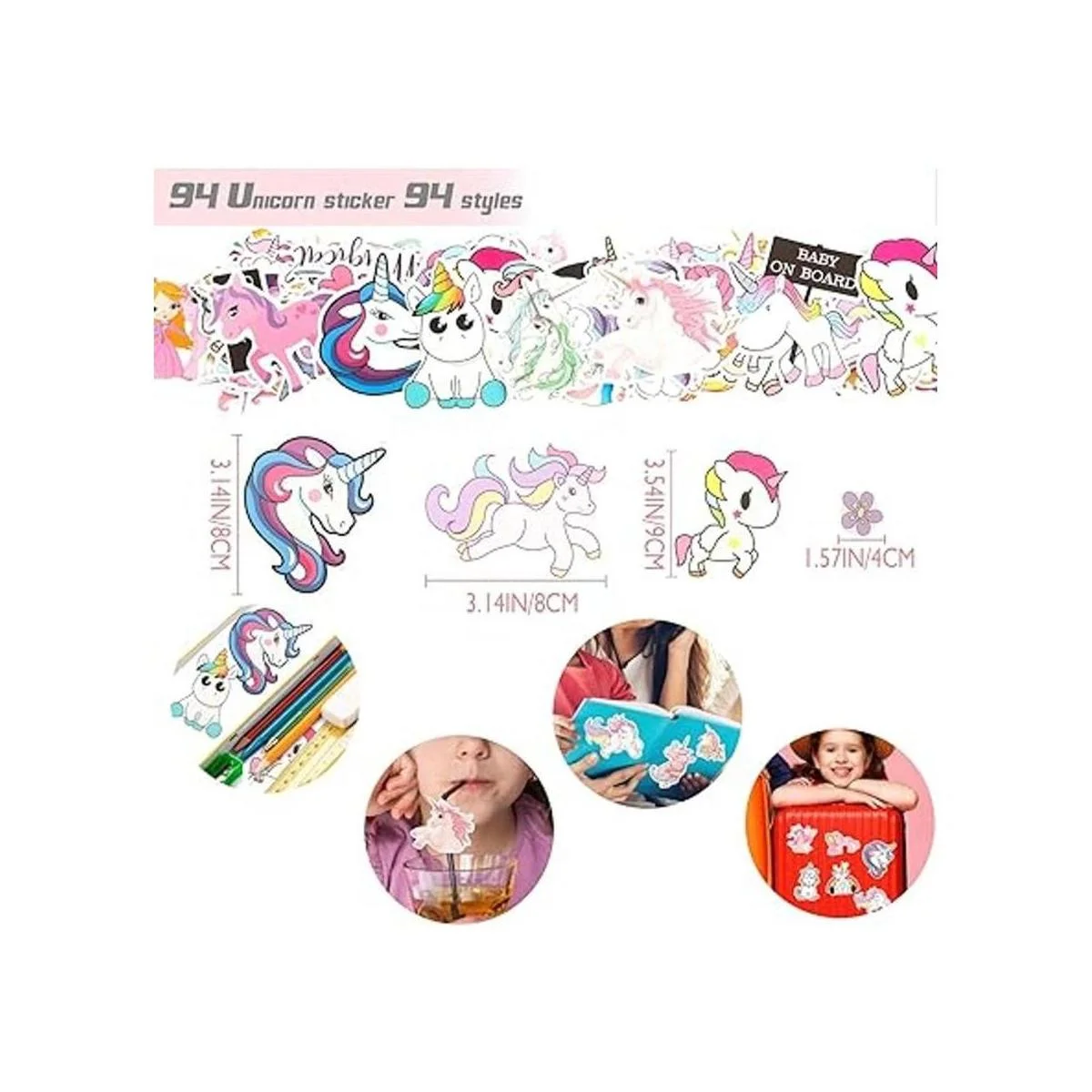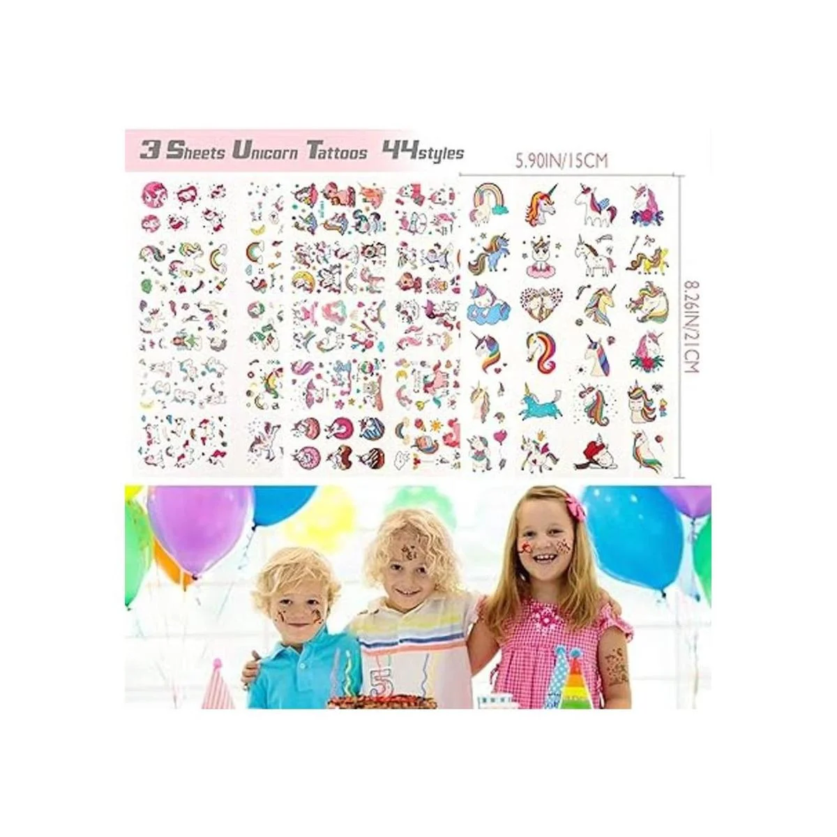 Coloridas calcomanías y tatuajes de unicornio: a cada niño les gustan las calcomanías y tatuajes, pueden ponerlo en sus libros, estuche, equipaje, mochila, etc. En cualquier lugar donde quiera ponerlo, y los tatuajes se pueden utilizar en fiestas, y son fáciles de usar, se mantendrán en algunos días.