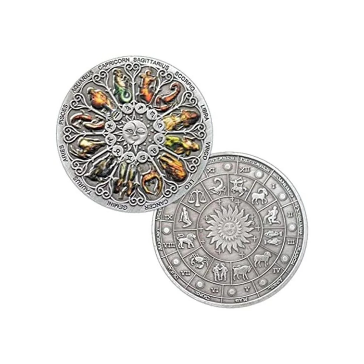 Moneda colorida de desafío de doce constelaciones moneda de la suerte del zodiaco