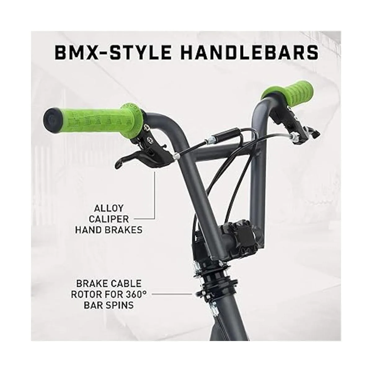 Las barras de manillar estilo bicicleta BMX y los frenos de mano son fáciles de detener y construir confianzas, también el rotor del manillar de estilo libre y las clavijas del eje