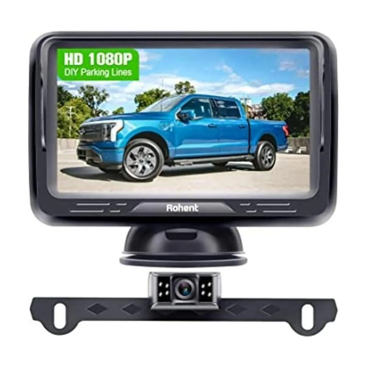 Monitor de cámara de reserva HD 1080P de visión nocturna impermeable, para coche, camión, placa de matrícula de visión trasera, kit de cámara inversa, 2 canales de video, líneas de cuadrícula Rohent R1
