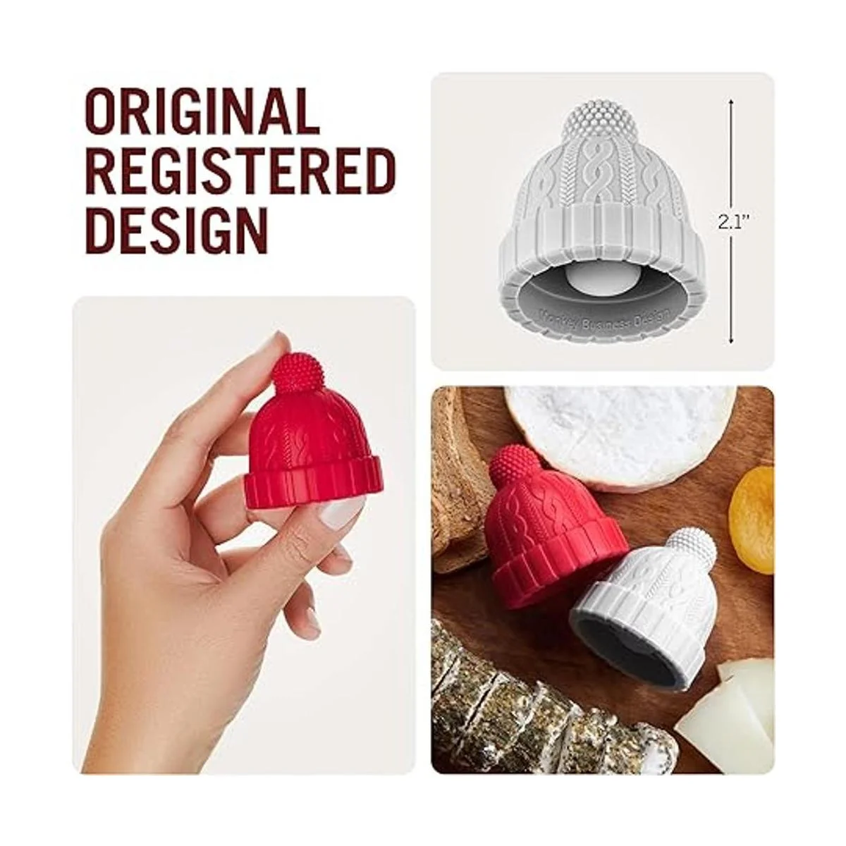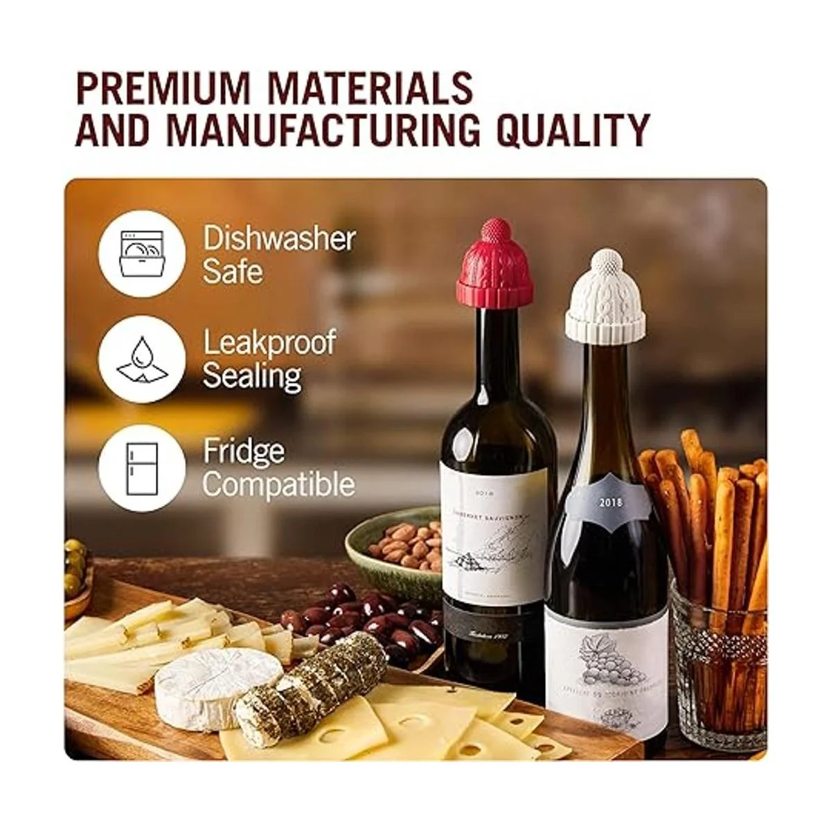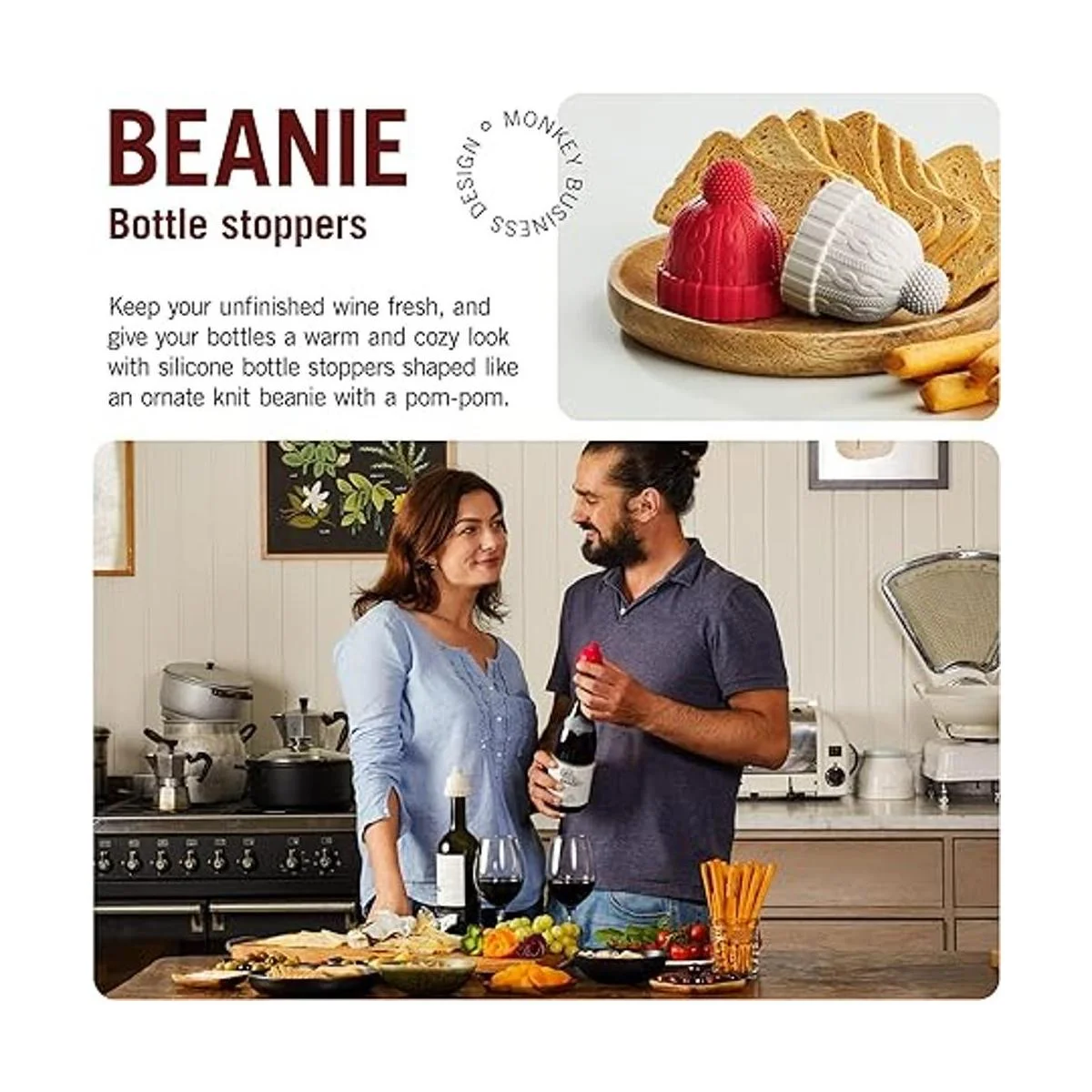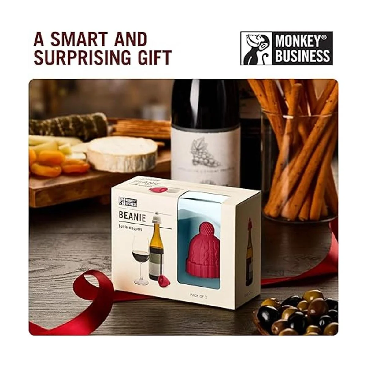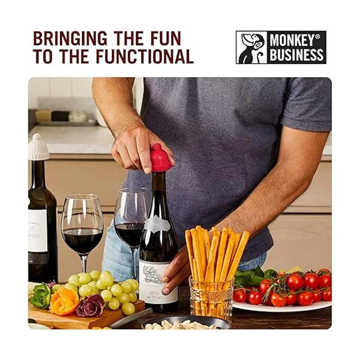 Monkey Business Tapón de silicona para botella con forma de gorro, juego de dos, novedoso reemplazo de corcho, bebidas y vino azulgris; rojogris; ver opciones de color, Rojo y gris