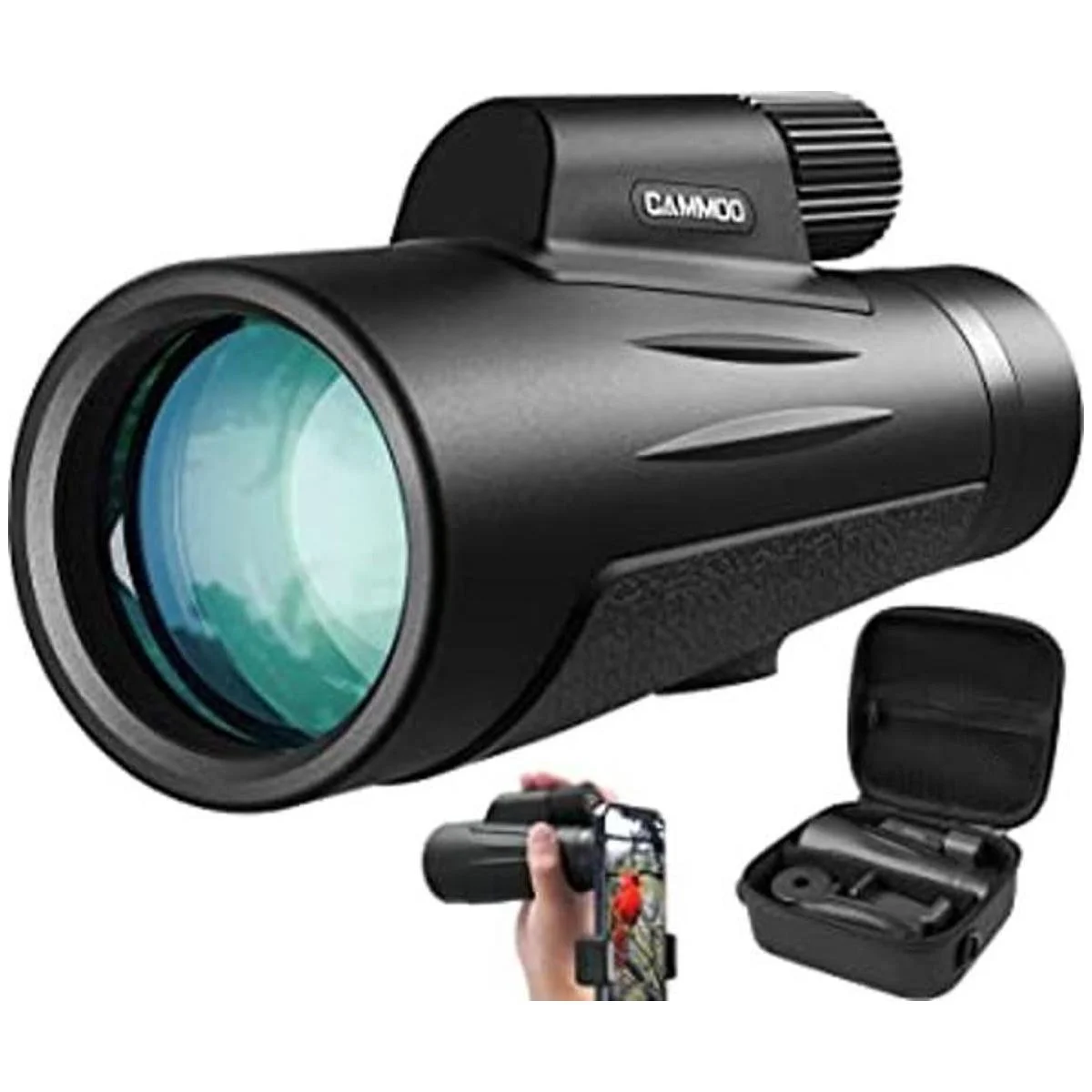 Compatible con todo tipo de teléfonos inteligentes: el monocular CAMMOO viene con un adaptador de teléfono inteligente de alineación rápida que es compatible con todos los últimos modelos de teléfonos inteligentes teléfono 13series, 12series, 11series, SE, Xs, Xr, X, 8 Plus, 8, 7Plus, 7, etc.. Y también es aplicable con trípode estándar de 1/4 pulgadas, fácilmente para grabar y compartir todas las imágenes maravillosas
