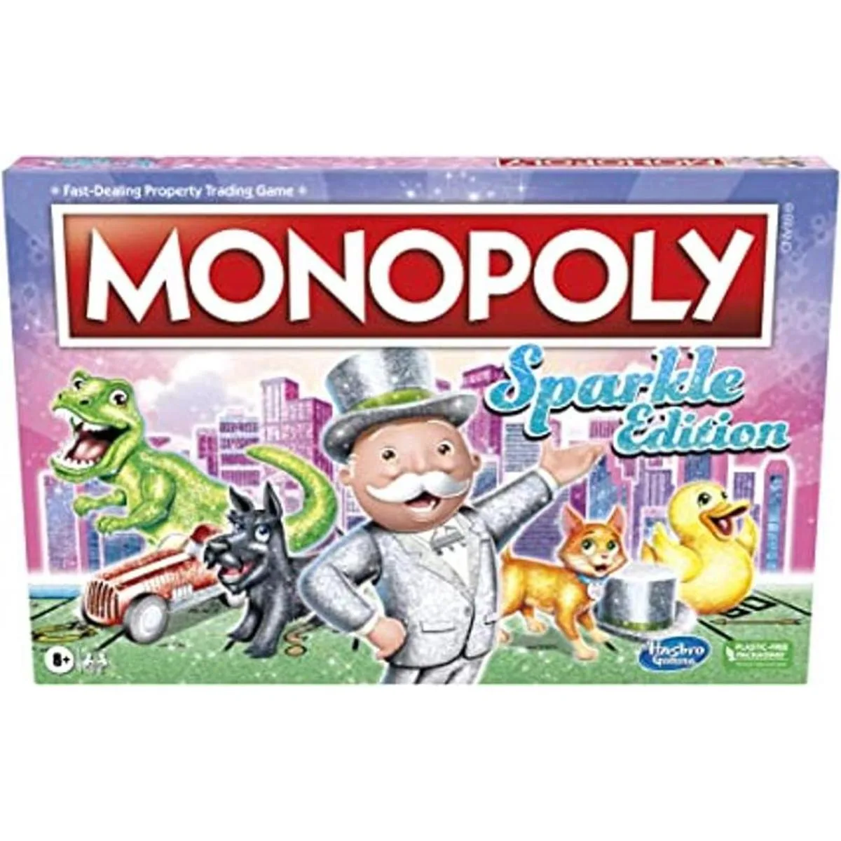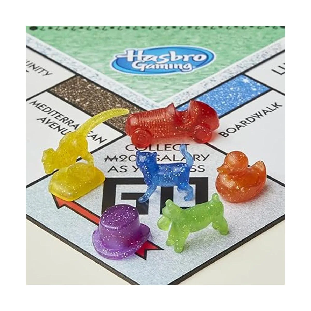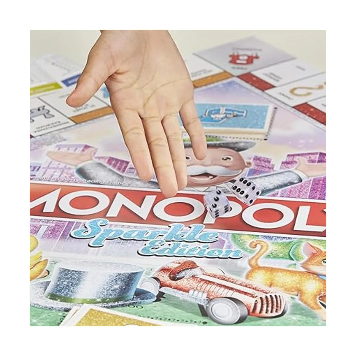 Monopoly Juego de mesa Sparkle Edition, juegos familiares, con fichas brillantes, dados nacarados, aspecto brillante, exclusivo de Amazon