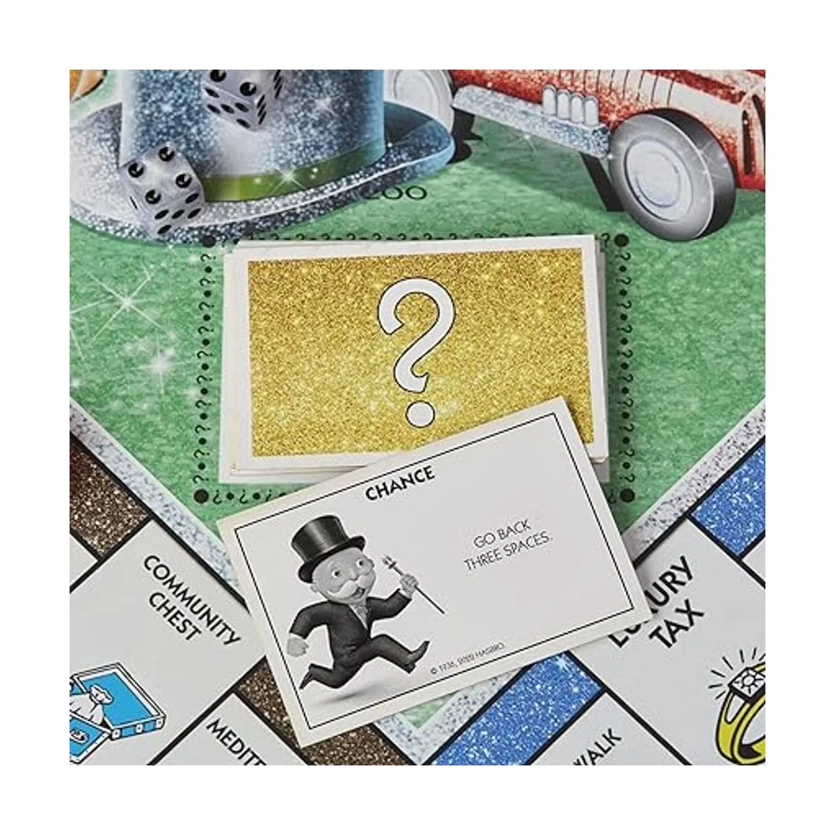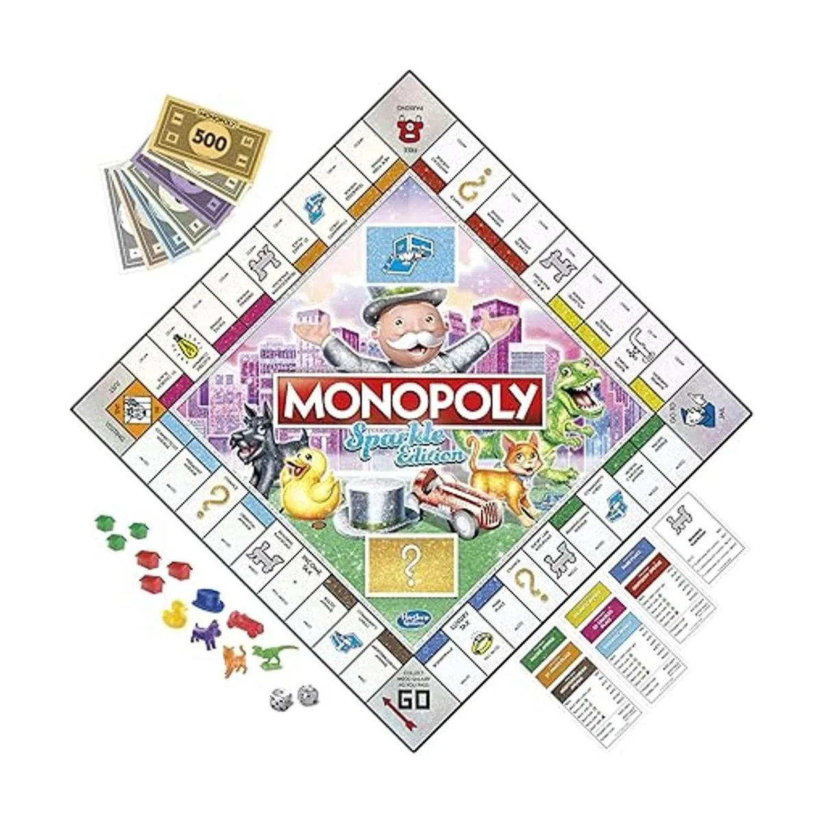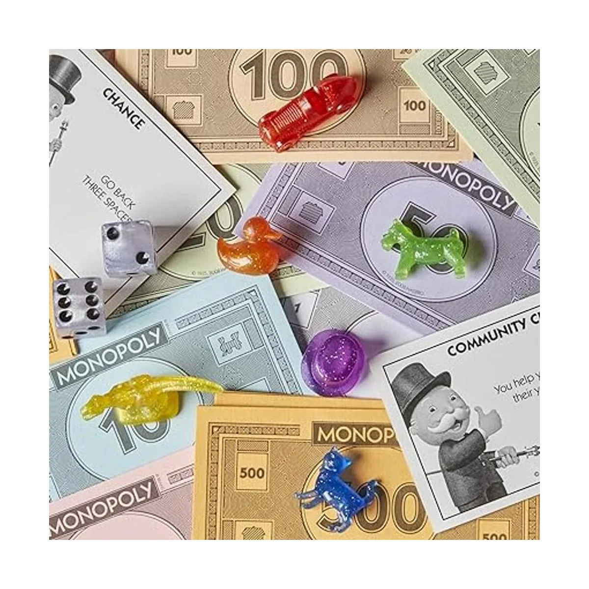 Monopoly Juego de mesa Sparkle Edition, juegos familiares, con fichas brillantes, dados nacarados, aspecto brillante, exclusivo de Amazon