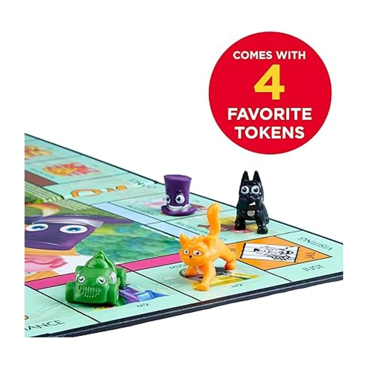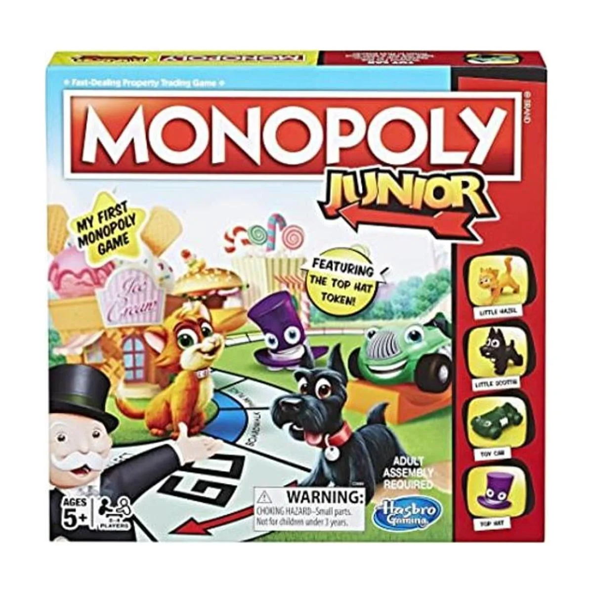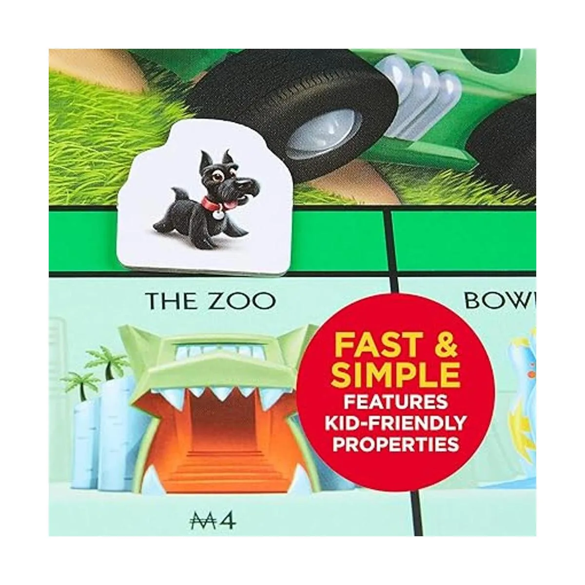 Divertido juego de Monopoly para niños: Las fichas incluyen al pequeño Scottie, la pequeña Hazel, el auto de juguete, con el icónico sombrero del señor Monopoly.
