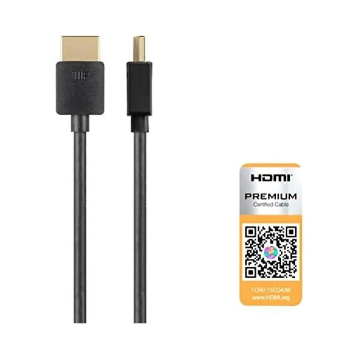 Monoprice Cable HDMI de alta velocidad, 2 pies, color negro, certificado premium, 4K a 60Hz, HDR, 18Gbps, 36AWG, YUV, 444 Serie Ultra Slim 124183