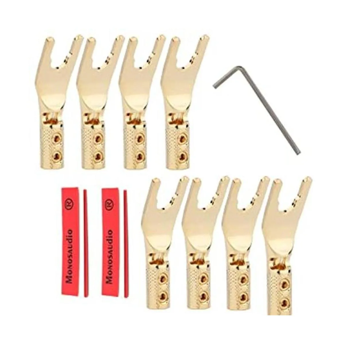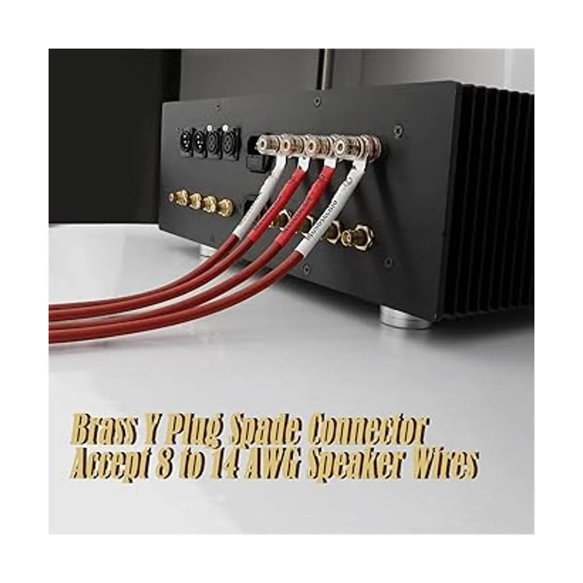 Monosaudio Banana Plugs Altavoz de latón chapado en oro 4K Banana Blug Banana Y conector de enchufe de 45 grados para 8Awg a 14 Awg para cable de altavoz HiFi, cine en casa y más con 8 tubos termoretráctiles