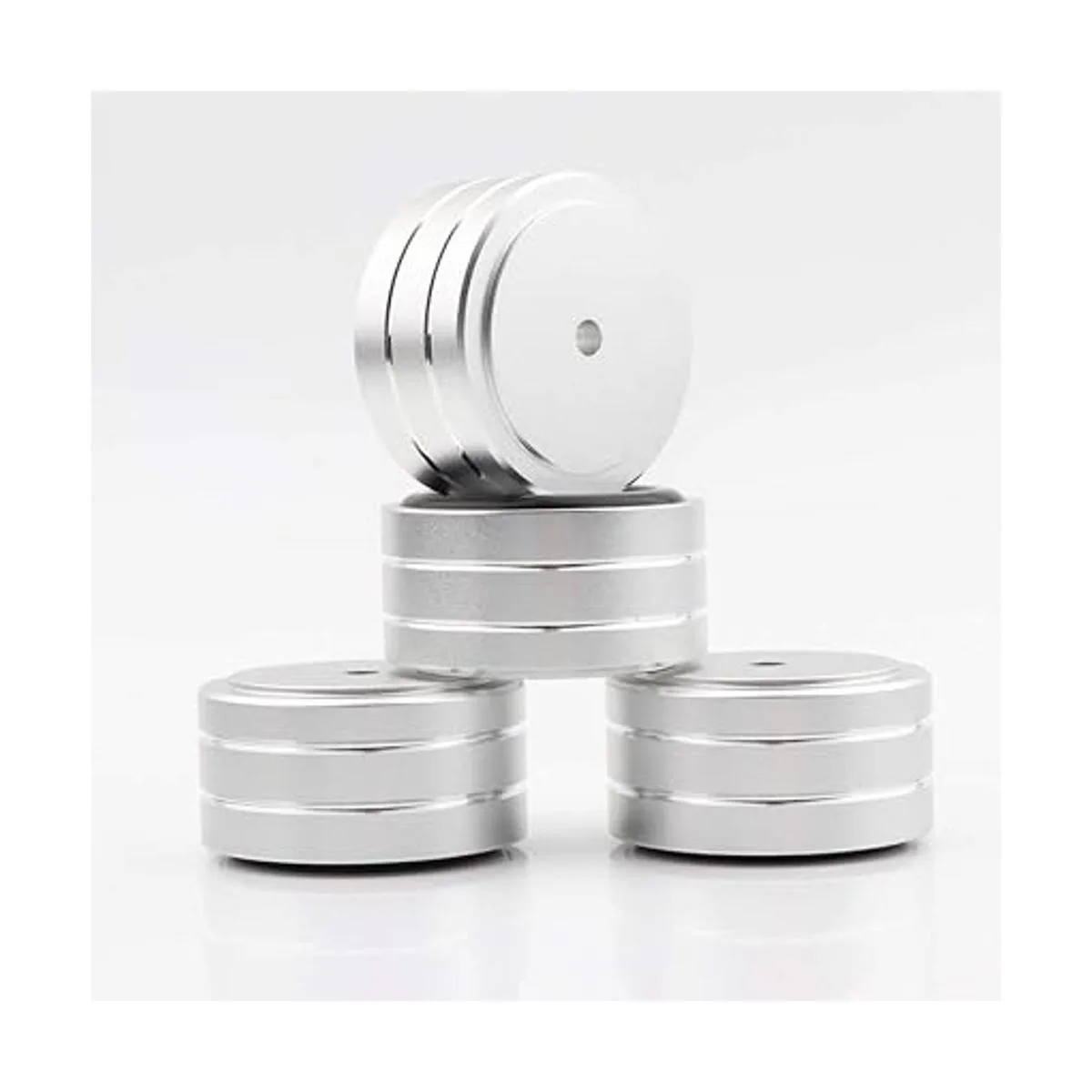 Monosaudio Patas de aislamiento, 4 piezas de 1.575 x 0.787 in de aluminio universales con anillos de goma antideslizantes, sin necesidad de adhesivo para audio, altavoces, subwoofers, cine en casa, tocadiscos, DAC color plateado