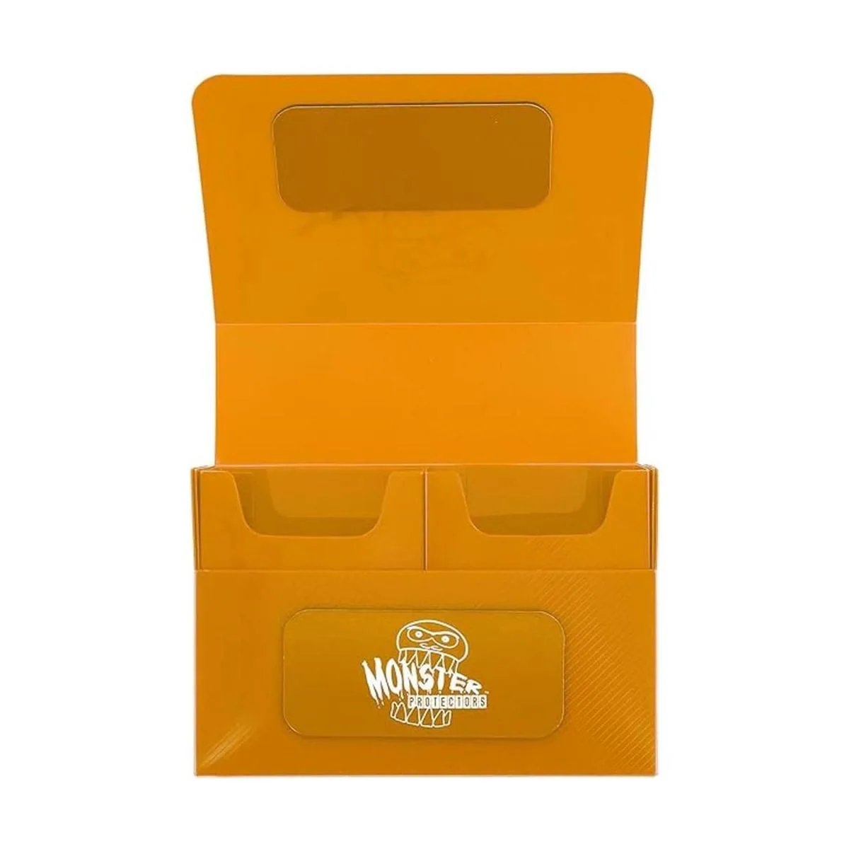 Monster Caja magnética de mazo de cartas coleccionables doble naranja 2 fundas de cubierta extraíbles Capacidad para 150 TCG para juegos compatibles con Yugioh, MTG, Magic The Gathering, Pokémon de larga duración, construcción duradera