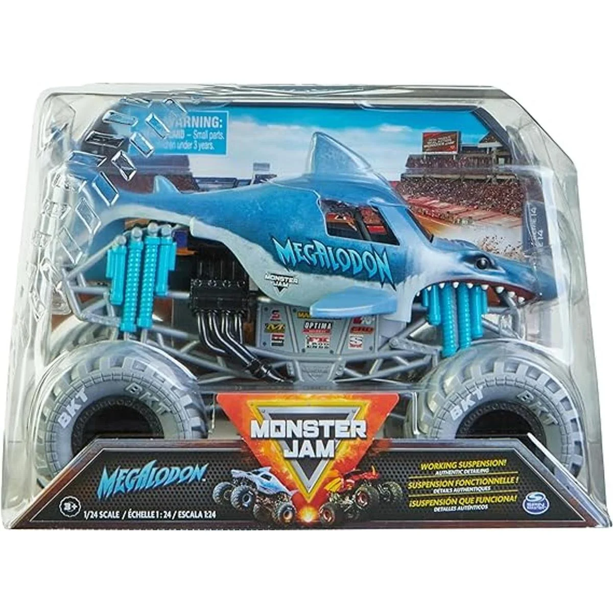 Monster Jam Camión monstruo oficial de Megalodon, vehículo de colección fundido a presión, escala 124, juguetes para niños de 3 años en adelante
