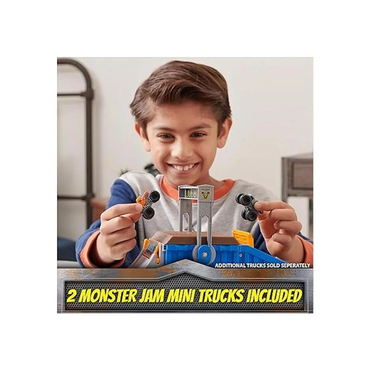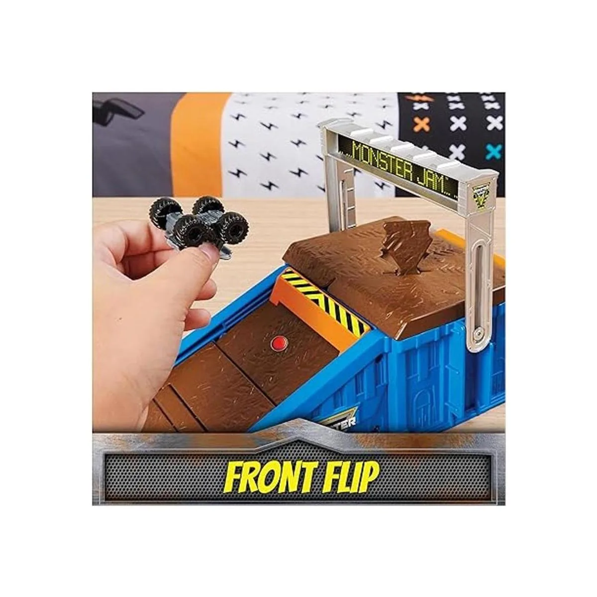 Monster Jam Mini Freestyle Flip Arena Playset y almacenamiento con 2 mini camiones, juguetes para niños y niñas a partir de 3 años