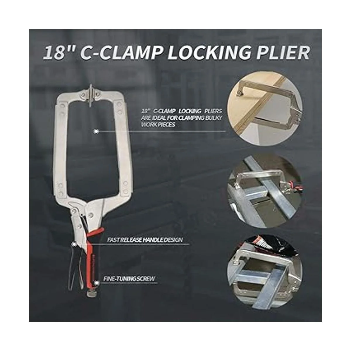 Los alicates de bloqueo de abrazadera en C de 18 pulgadas son ideales para sujetar piezas de trabajo voluminosas. Ampliamente utilizado en todo tipo de trabajos fijos de sujeción, trabajo caliente, etc.