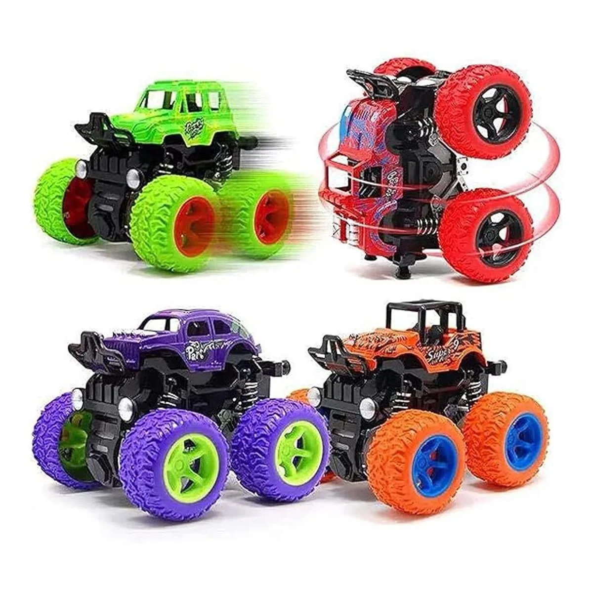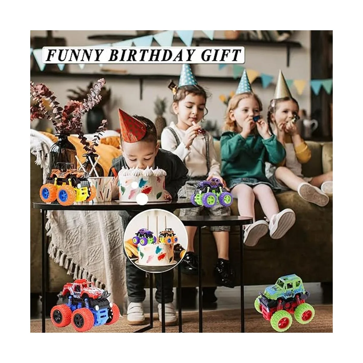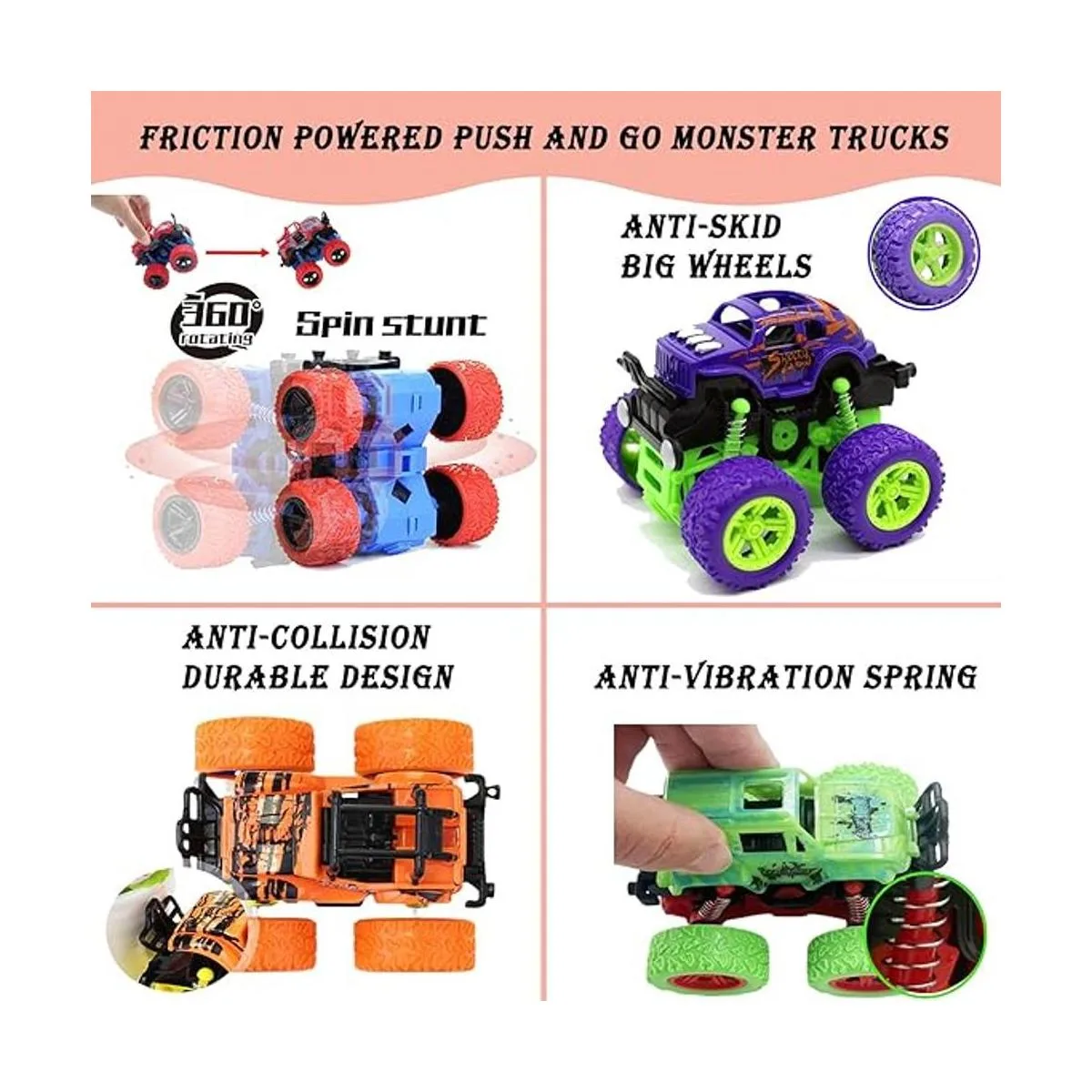 Monster Truck for Boys 3 4 5 6 7 Year Old,4 Pack Push and Go Friction Powered Car Toys, DoubleDirections Inertia Pull Back Vehicle Set,Birthday Party Gift for Kids