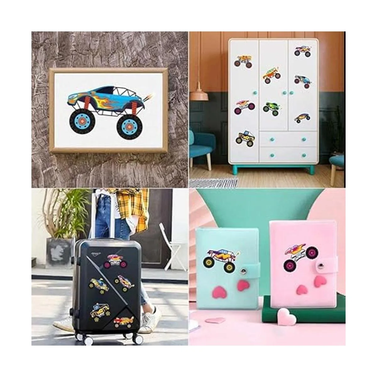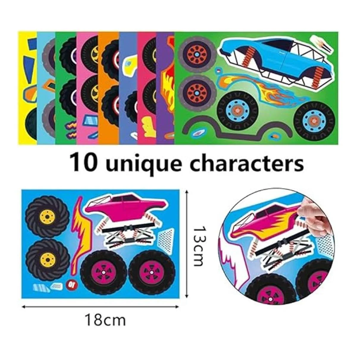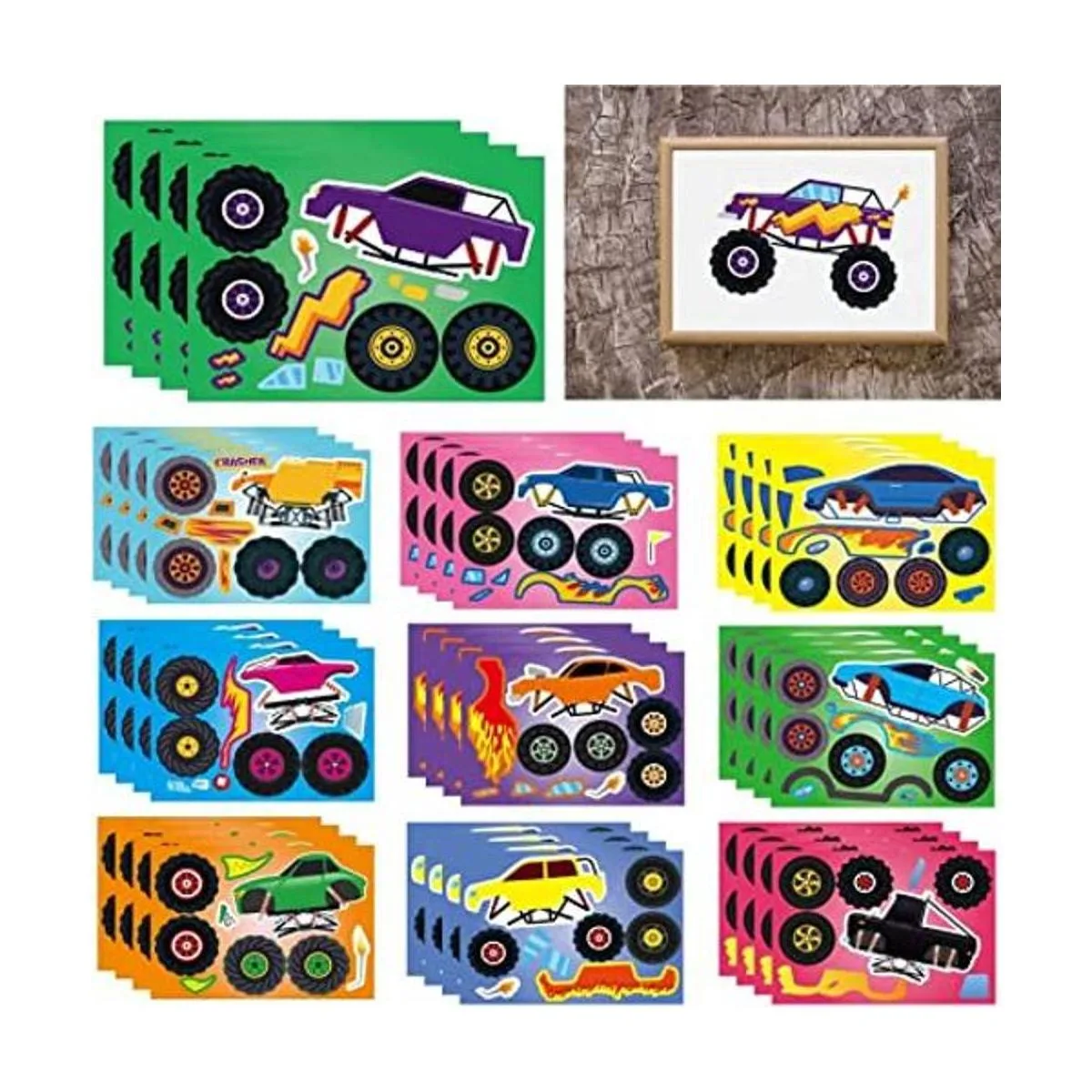 Idea de diseño especial: los niños pequeños están más interesados en los coches, tienen muchas ideas, este juego de calcomanías de camión monstruo puede ejercitar su imaginación y capacidad práctica, cultivar la confianza de los niños, el funcionamiento de bricolaje es más impresionante.