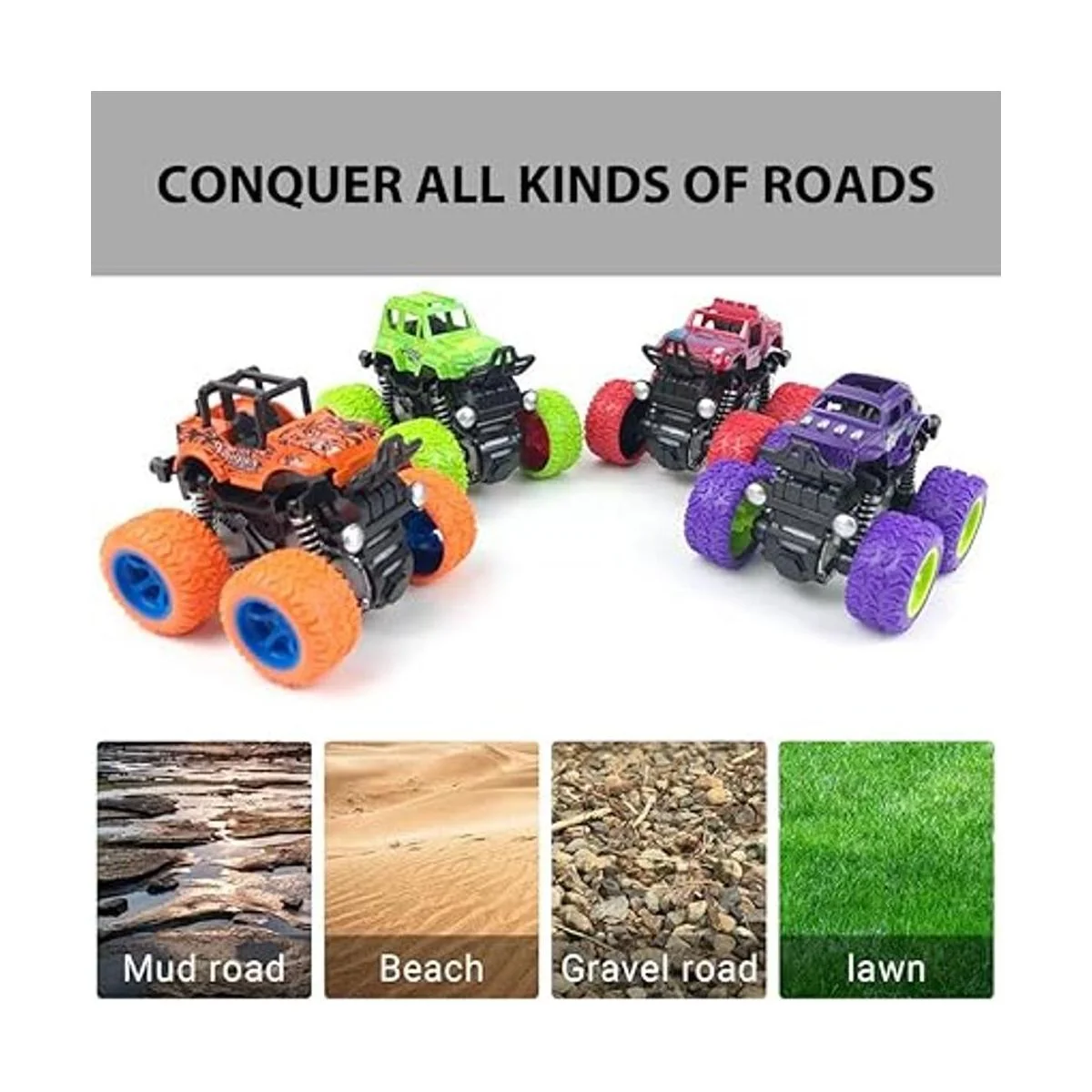 Monster Trucks para niños, paquete de 4 vehículos para niños pequeños, rotación de 360 4 ruedas, accionamiento duradero, impulsado por fricción, juguete para empujar y ir, juego de camión, regalo para niños y niñas de 3, 4, 5, 6, 7, 8 años