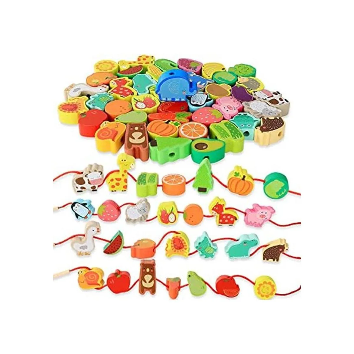 Montessori Educational Threading Toys Wooden Stringing Farm Animals Fruits Lacing Beads Preschool Toy for Toddler 3 4 5 Year Old Boys Girls