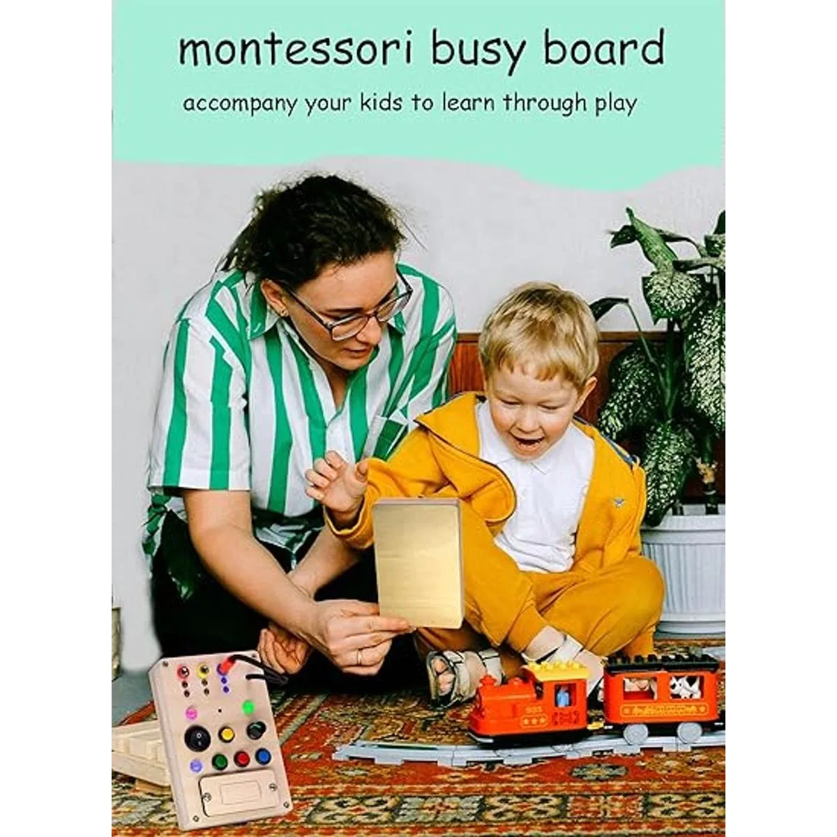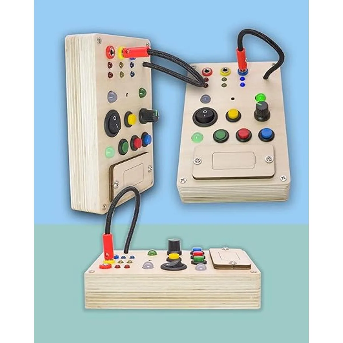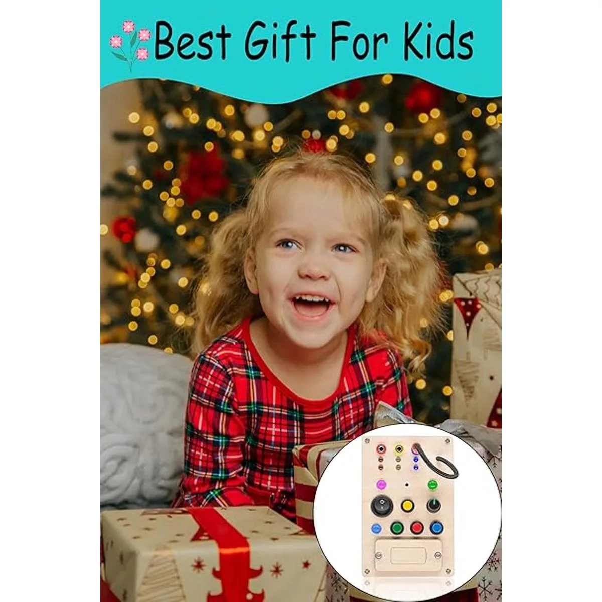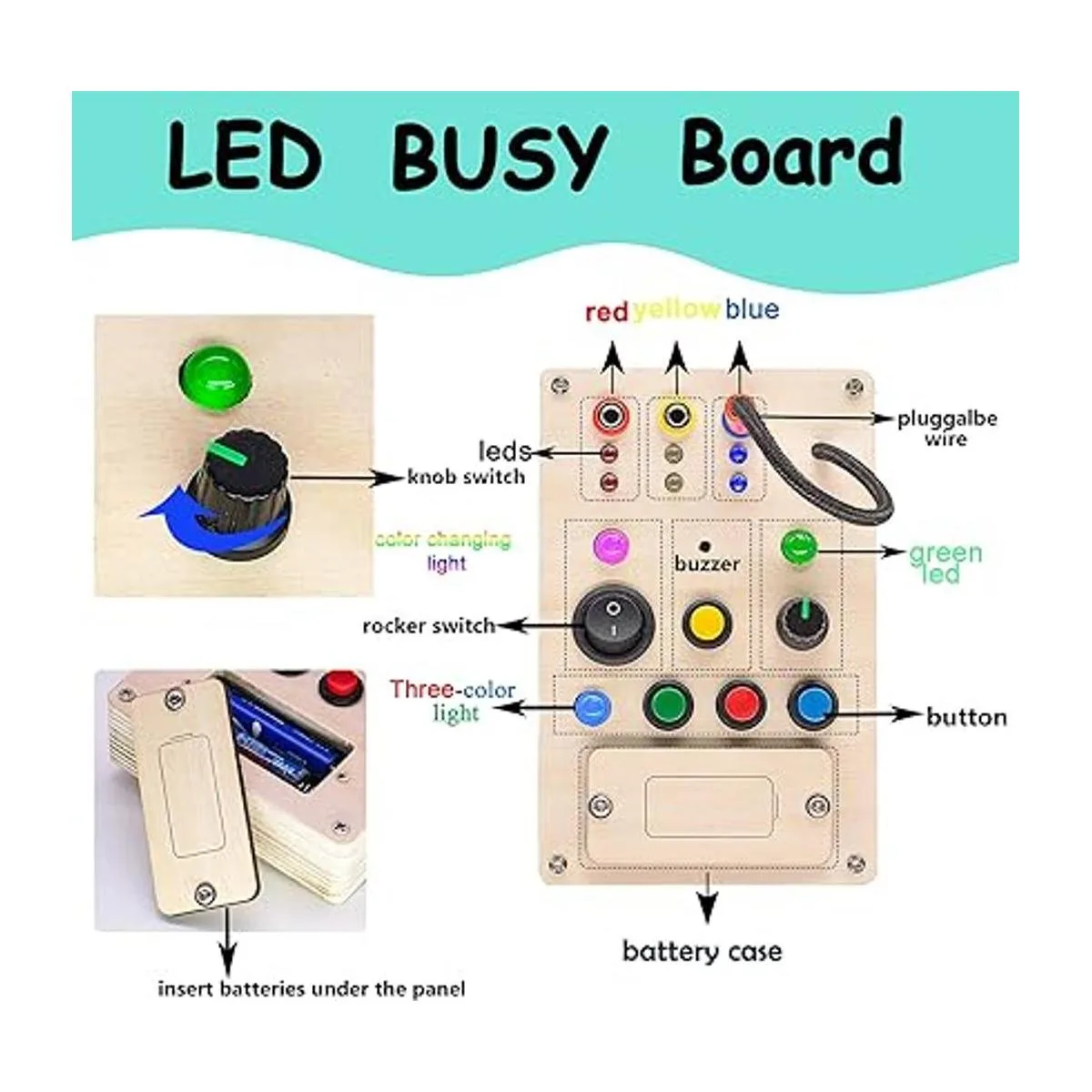 Tablero ocupado con interruptor de luz: esta tabla iluminada para bebé incluye 9 bombillas e interruptores, tiene varios colores diferentes de bombillas e interruptores/botones que combinan entre sí por color, el cable enchufable y la bocina atraerán la atención de tu bebé.
