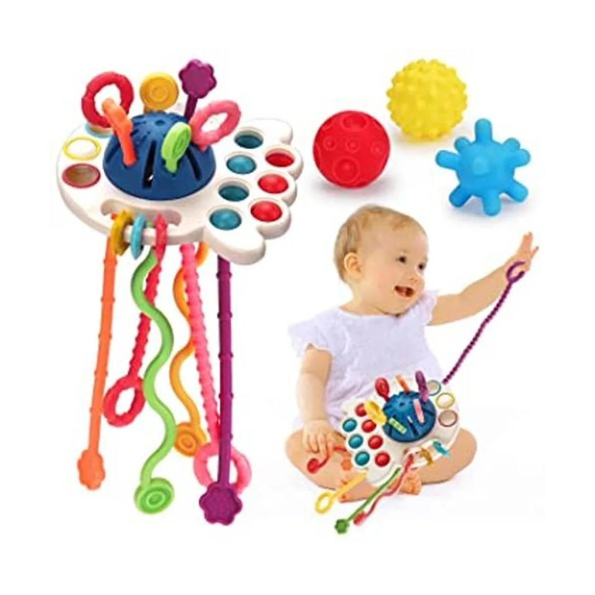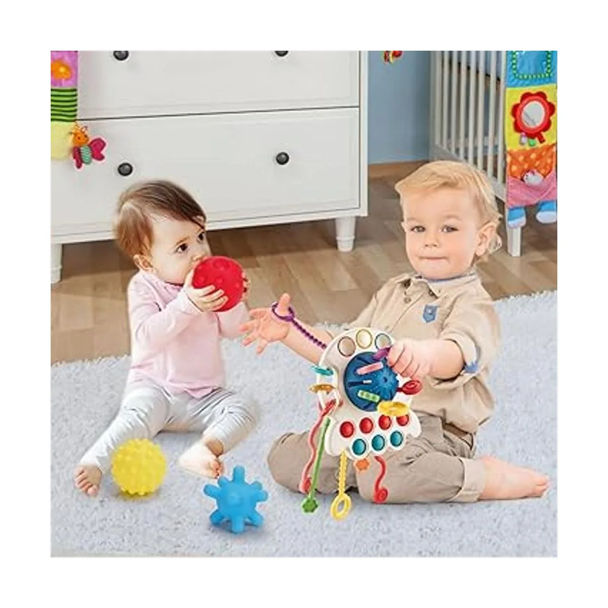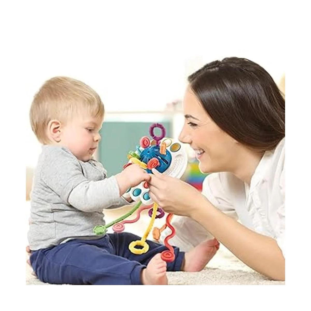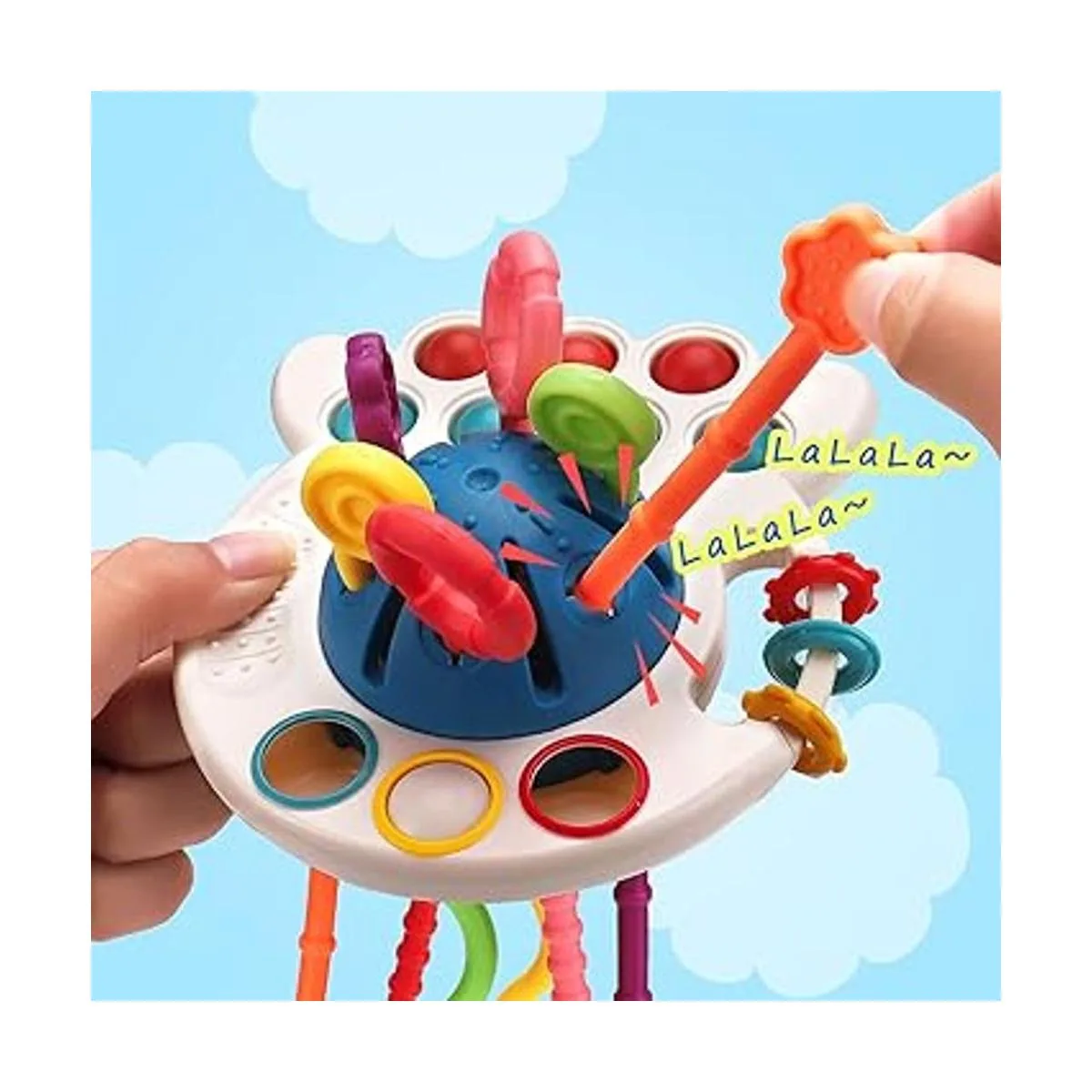 Adorable juguete de cuerda en forma de pulpo Nuestro juguete de cuerda premium viene con 6 cuerdas de textura en diferentes formas y colores, 1 bola deslizante y 7 juguetes suaves, ayuda a tus bebés a desarrollar habilidades motoras de los dedos, les permite pasar horas en una experiencia sensorial alegre. Una solución perfecta para llamar la atención de tus bebés y mantenerlos ocupados con bonitos juguetes en forma de pulpo.