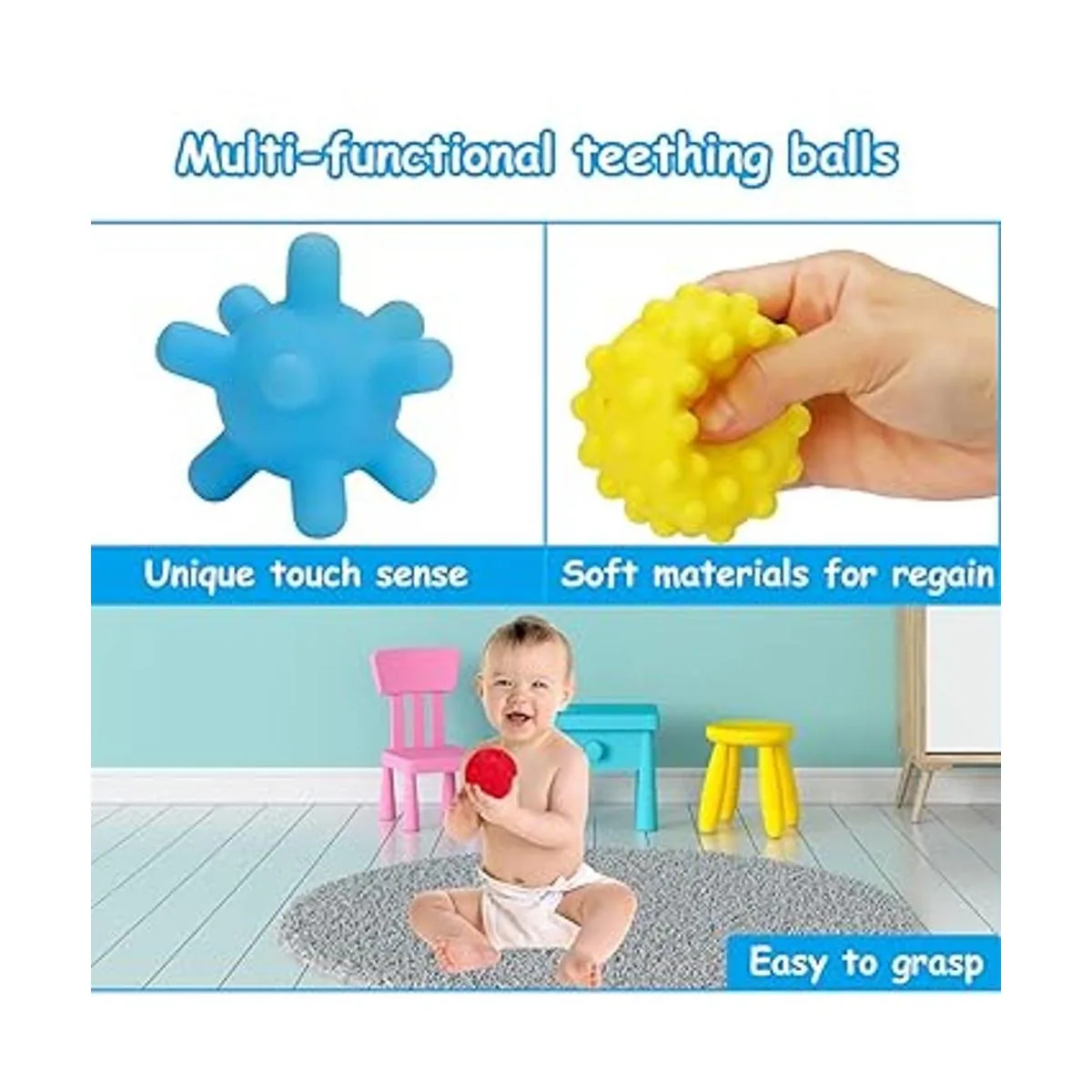 Múltiples bolas sensoriales coloridas para bebés Tres bolas de baño suaves para bebés y alivio de la dentición con chirriante del tamaño adecuado para que sus manos pequeñas se agarren, animan a los bebés, bebés y niños pequeños a masticar, alcanzar, batear, agarrar y disfrutar del juego sensorial. Además, pueden ser una maravillosa herramienta de masaje para proporcionar a los bebés una experiencia sensorial vibrante. Juguetes amigables para bebés de 6, 9, 10 meses.