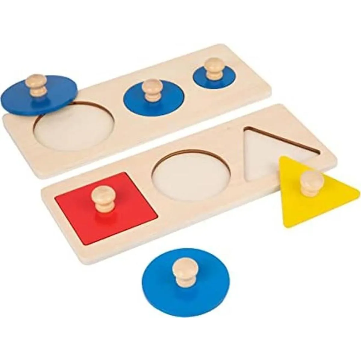 Fácil de agarrar, grueso, muy adecuado para manos pequeñas : el rompecabezas de madera gigante puede mejorar la capacidad de agarre de dos dedos de los niños, y puede ayudar a los niños mayores de 0 a 3 años a agarrar y operar fácilmente tres bloques estampados de diferentes formas.