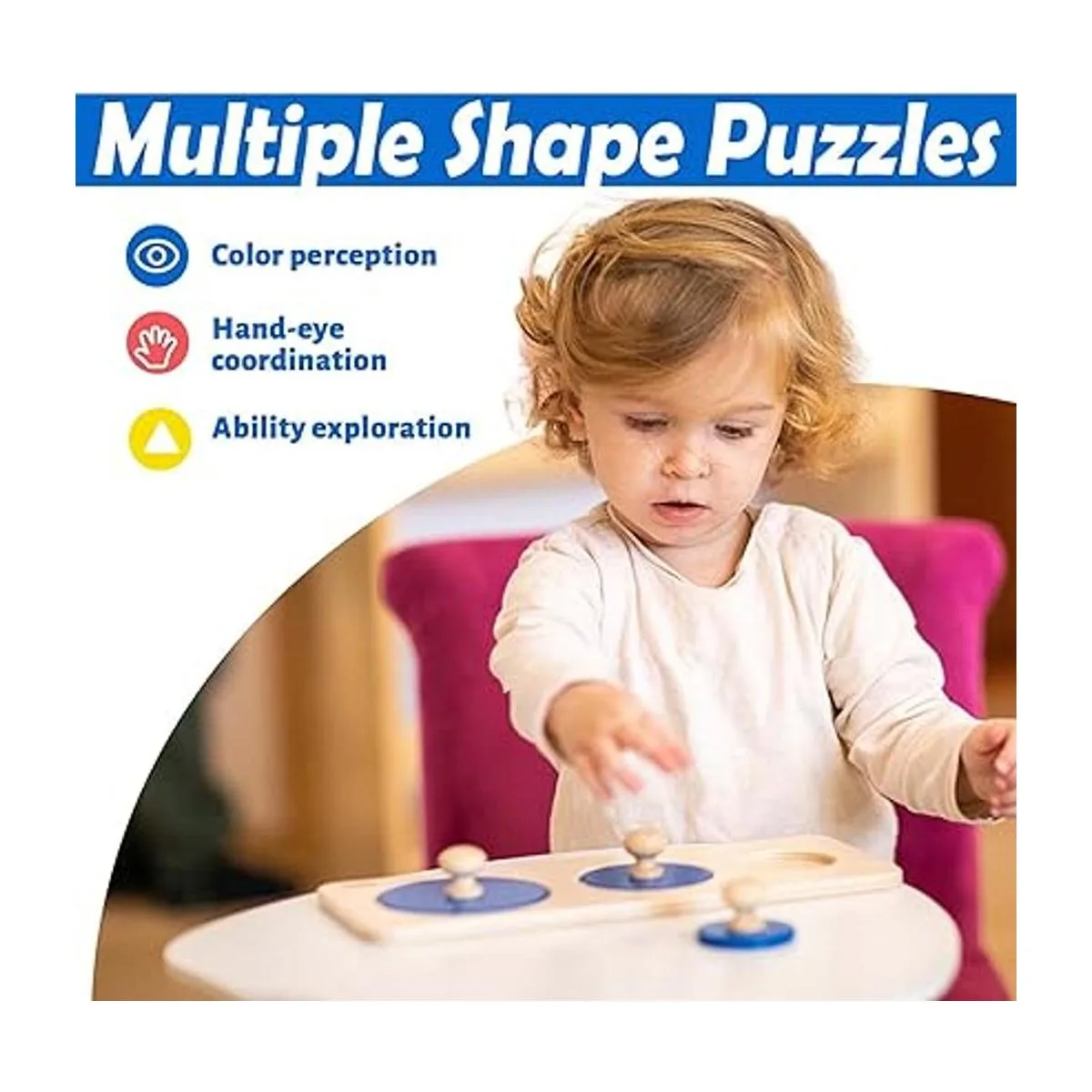 Montessori Juguetes para bebés de 6 a 12 meses para rompecabezas de múltiples formasrompecabezas de círculos múltiples, juegos para bebés para rompecabezas de madera, materiales de aprendizaje preescolar, juguetes educativos y suministros de escuela en casa