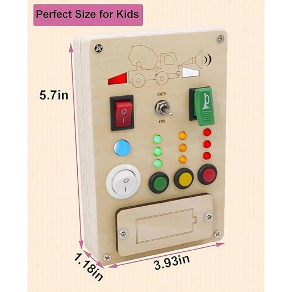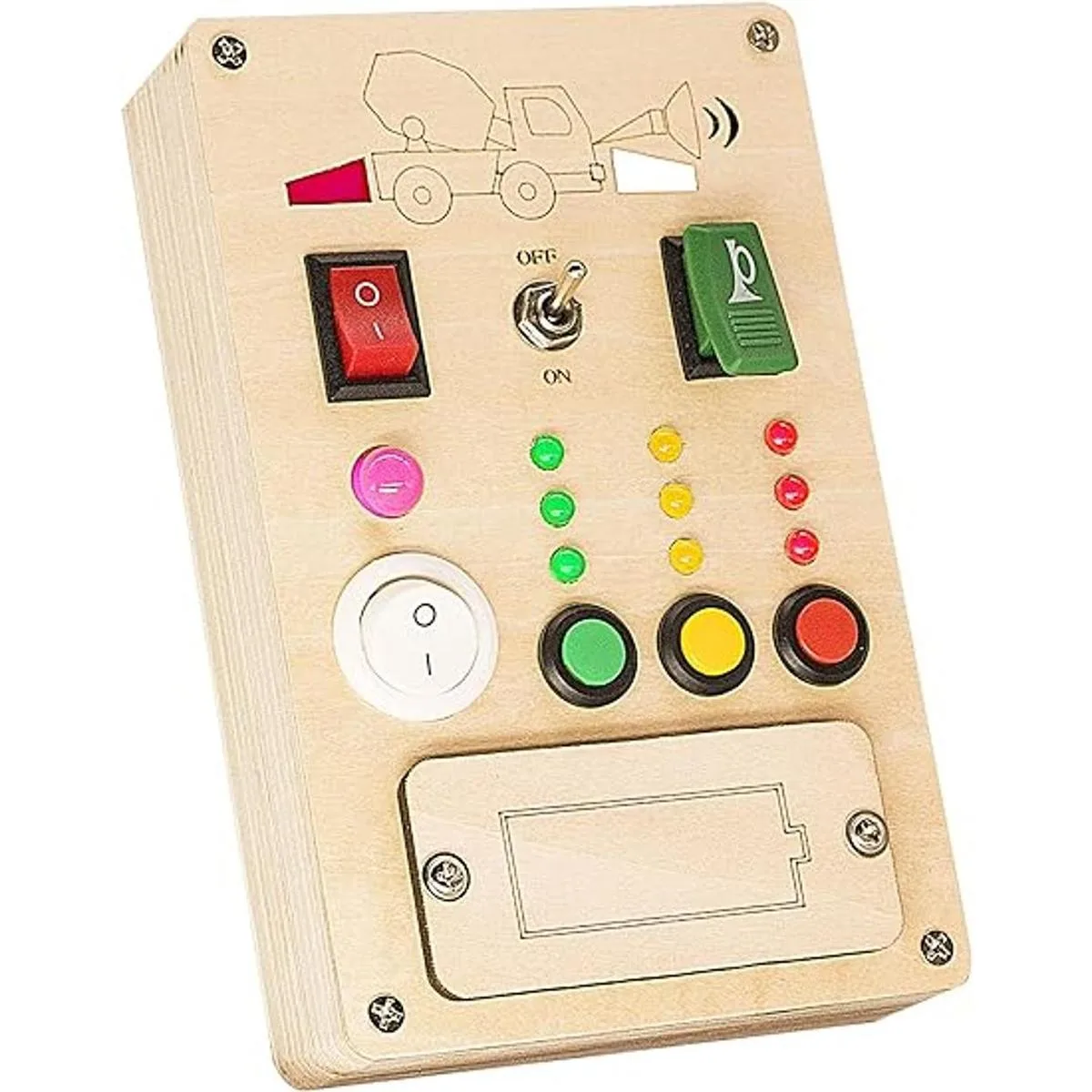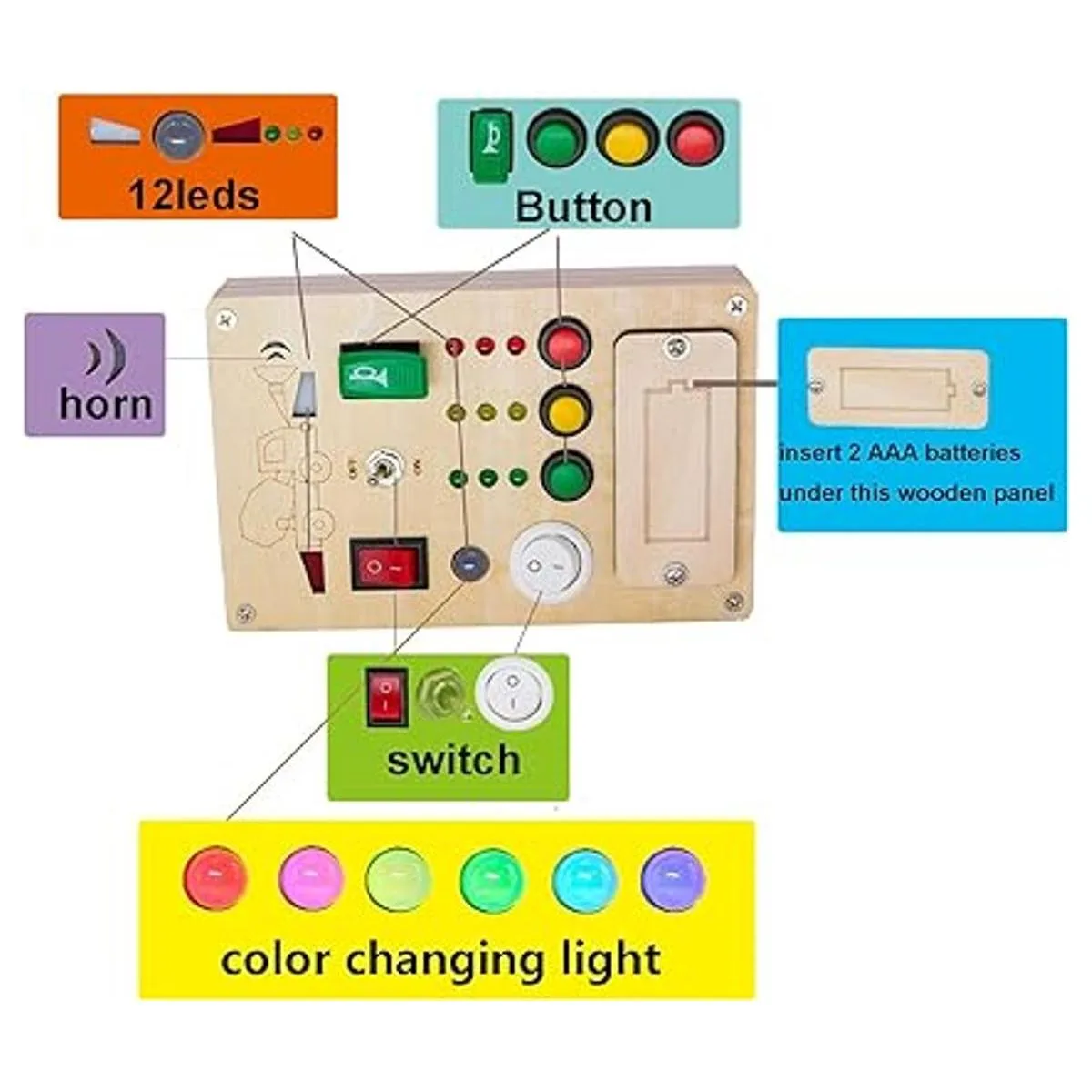 Montessori Juguetes para niños pequeños de 1 año de edad, con botón LED, interruptor de luz, juguetes de aprendizaje preescolar, juguetes sensoriales de madera para niños pequeños de 1 a 3 años, juguetes antiestrés de viaje juguete de luz temática de vehículo