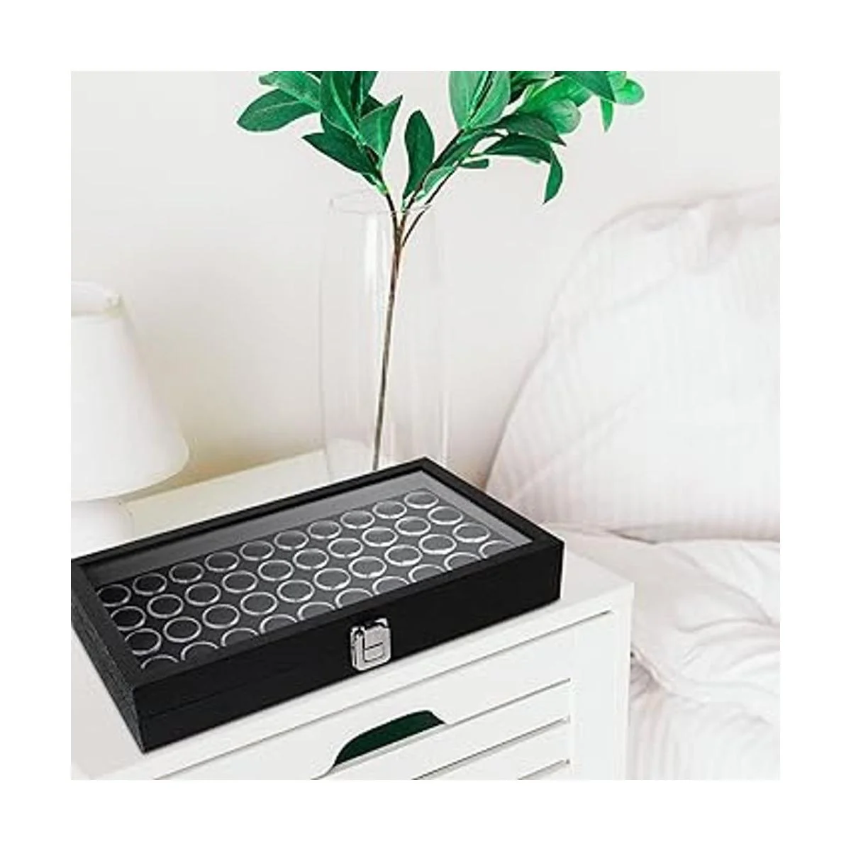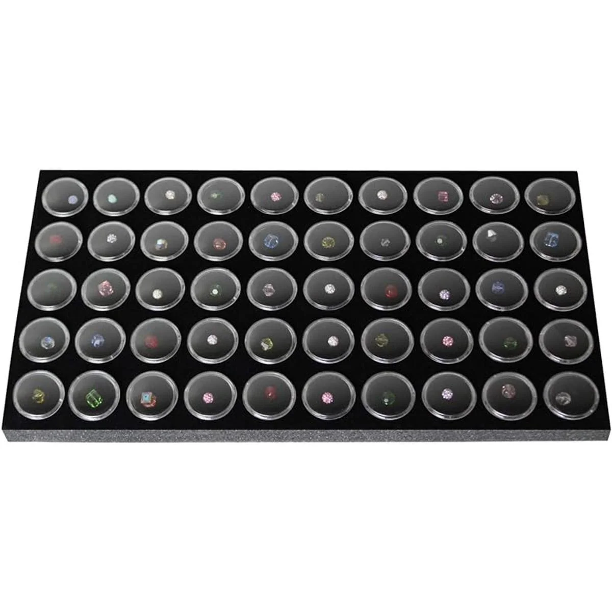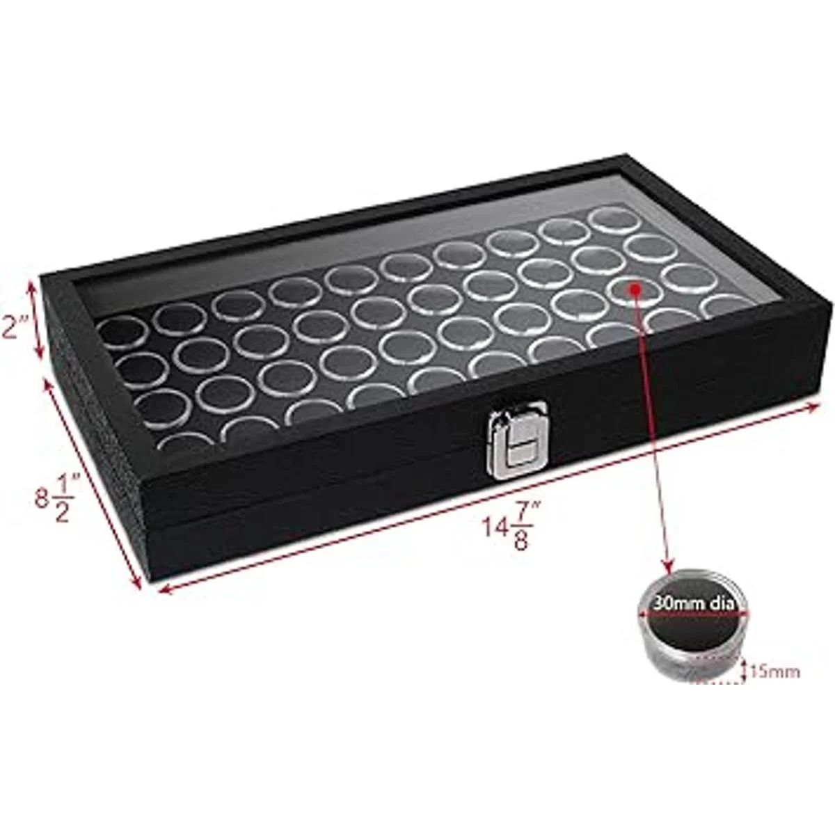 Caja organizadora para colección: vitrina superior de cristal con 50 bandejas para tarros de gemas.