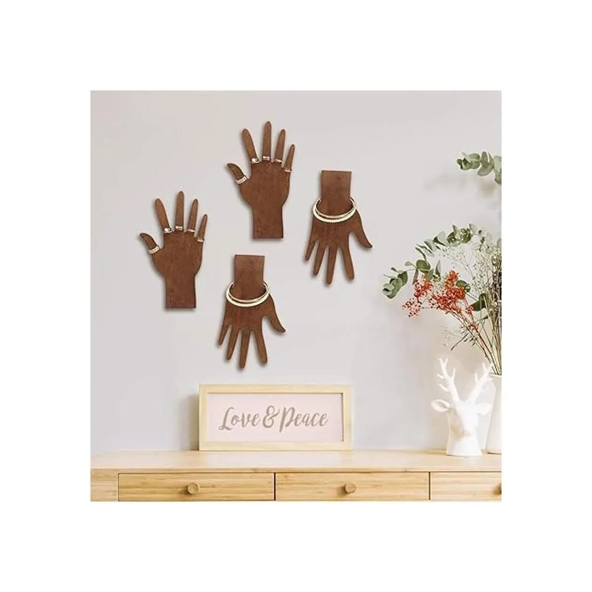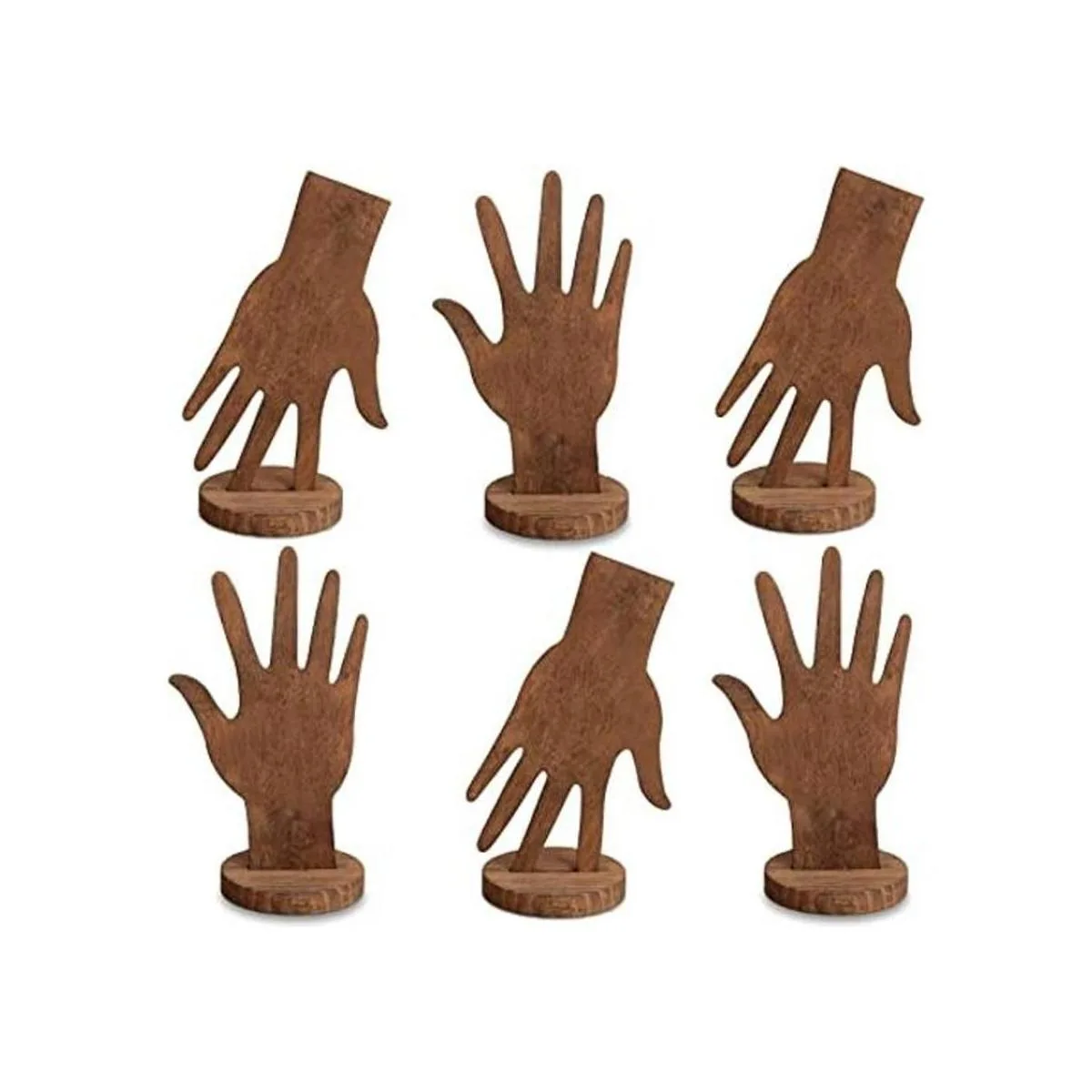 MOOCA Juego de 6 piezas de madera con forma de mano para exhibición de joyas, soporte de anillo de pulsera, exhibición de mano de maniquí de madera, soporte de exhibición de joyería de mano de madera, marrón