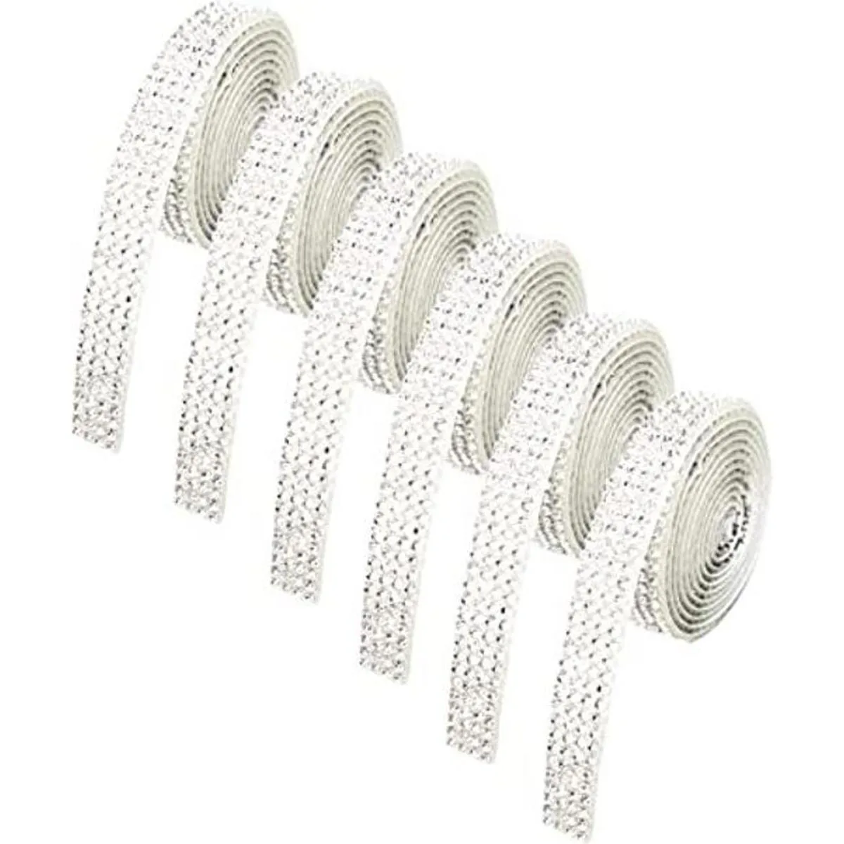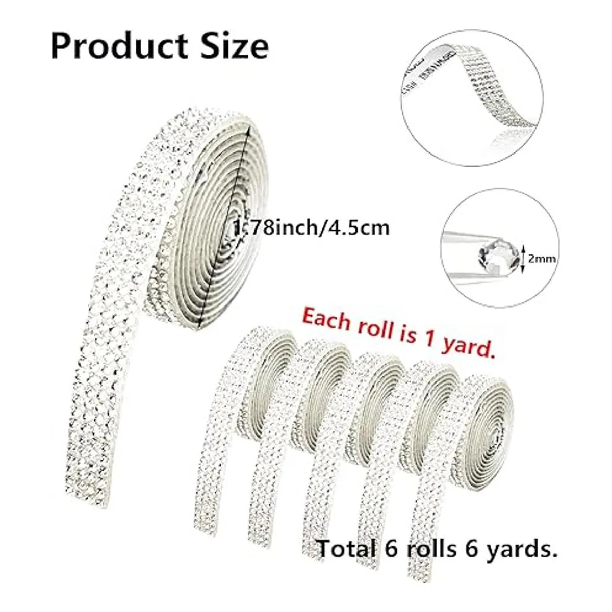MOODKEY 6 rollos de cinta de diamantes de imitación de cristal autoadhesivo, cinta adhesiva de cristal plateado para manualidades con tiras de diamantes de imitación de 0.079 in para decoración de automóvil, teléfono y automóvil 6 yardas